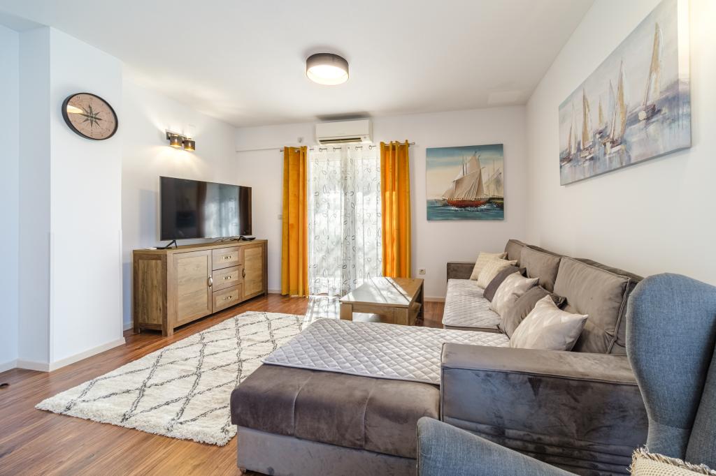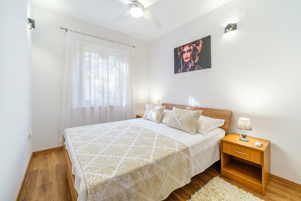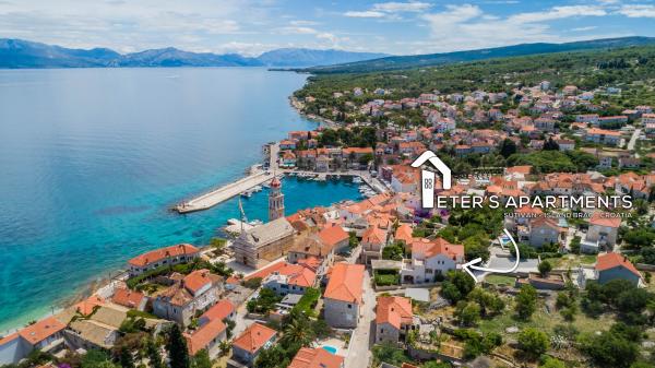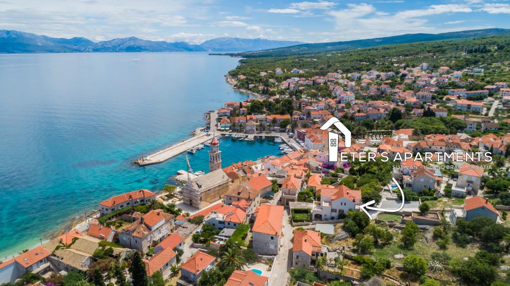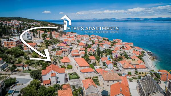 Plně a moderně vybavený apartmán v luxusním domě v klidné části Sutivan, který se nachází v samém centru města, druhá řada k moři. Zařízení je 2 minuty chůze od první pláže a nachází se v samém centru města. Zařízení nabízí ubytovací služby v jednom apartmánu. Apartmán nabízí ubytování pro 6 osob, v případě potřeby s dalšími dvěma na přistýlce. K bytu náleží parkovací stání v garáži. Zařízení nabízí grilovací služby se speciálně vybaveným jídelním koutem, barem a dřezem. Byt má dvě terasy, z nichž jedna je o velikosti 20 m2 s výhledem na moře a druhá na jižní straně 8,5 m2. Nemovitost nabízí prádelnu. Byt má 3 ložnice, 2 koupelny a jednu další toaletu. Obývací pokoj a jídelna tvoří jeden prostor 50 m2.
