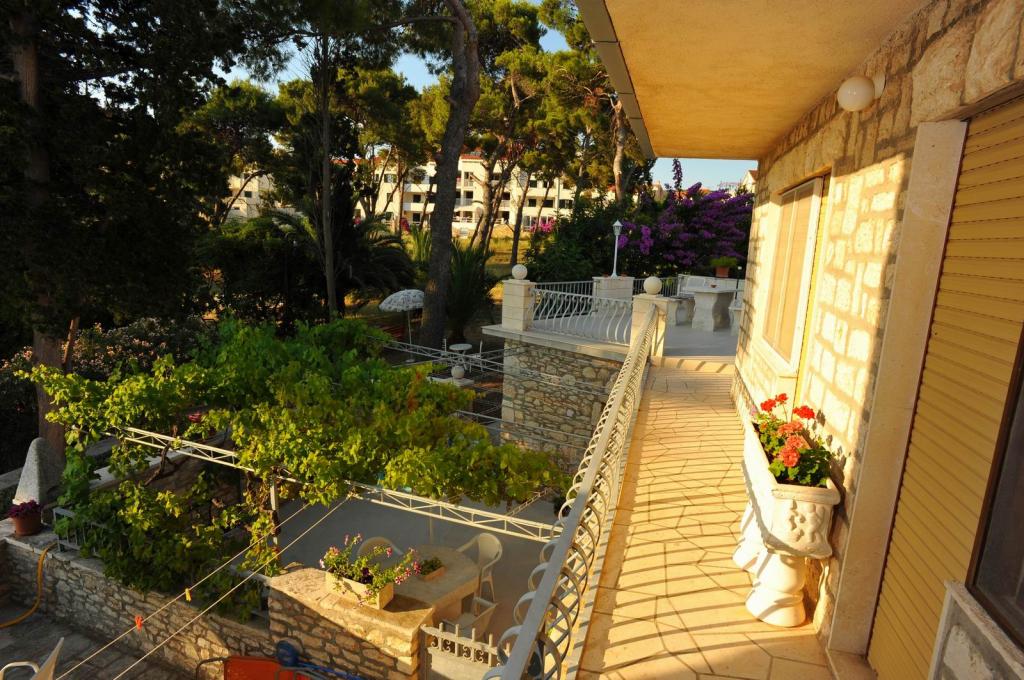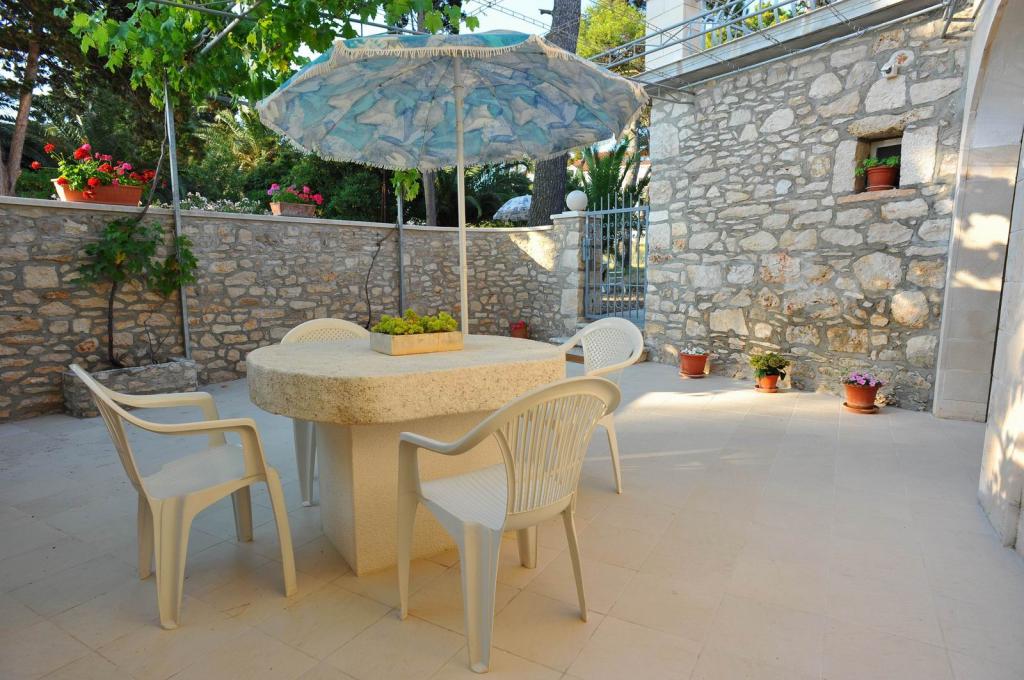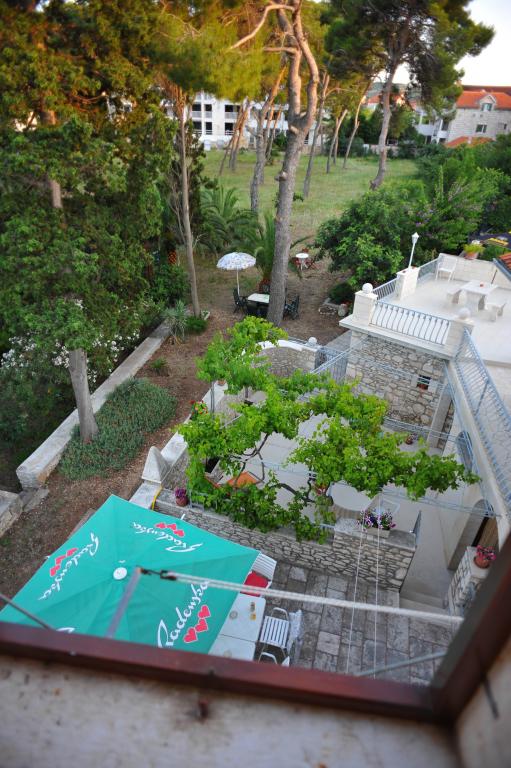 Apartmány se nacházejí v rodinném domě v první řadě k moři. Dům se nachází v klidné oblasti v centru města, 10 m od hlavní pláže, s krásným výhledem na moře. Je obklopen velkou zahradou s borovicemi, palmami a další středomořskou vegetací. Mezi sdílená zařízení, která nabízíme, patří gril, pračka, satelitní TV, wifi zdarma, internet a parkoviště. Dům má čtyři klimatizované apartmány.