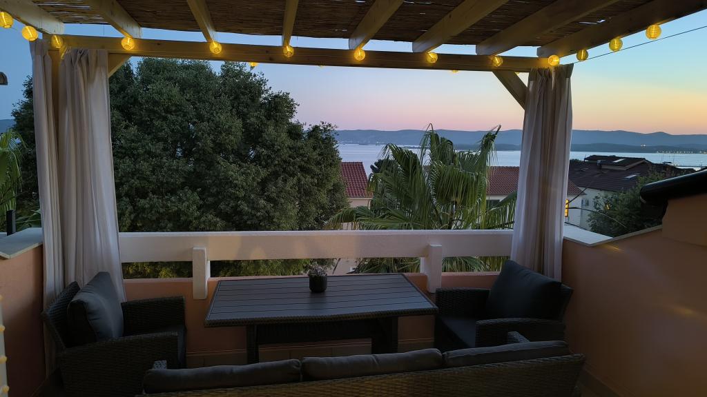 Pěkně zařízený a vybavený apartmán, v kuchyni horkovzdušná fritéza, toustovač, kávovar, mikrovlnka. Vše čisté a uklizené, přivítali nás ručníky a minimální hygienické potřeby. Pěkná terasa s krásným výhledem na moře, centrum města a Biograd. Skvělá lokalita, pláž blízko, centrum blízko, větší obchody 5 minut autem. Vřele doporučuji.