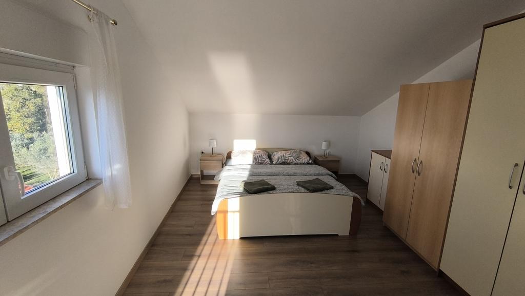 Apartmán Maja s krásným výhledem na moře a ostrovy se nachází v klidné lokalitě nedaleko centra města a jen 200 metrů od hlavní pláže. Nachází se v bytovém domě v nejvyšším, 3. patře, bez výtahu. Byt se skládá ze dvou ložnic, prostorného obývacího pokoje, kuchyně, koupelny a terasy s výhledem na nedaleké ostrovy, moře, přístav a město Biograd. Parkování je možné před budovou nebo na veřejném parkovišti vzdáleném pouhých 50 metrů.