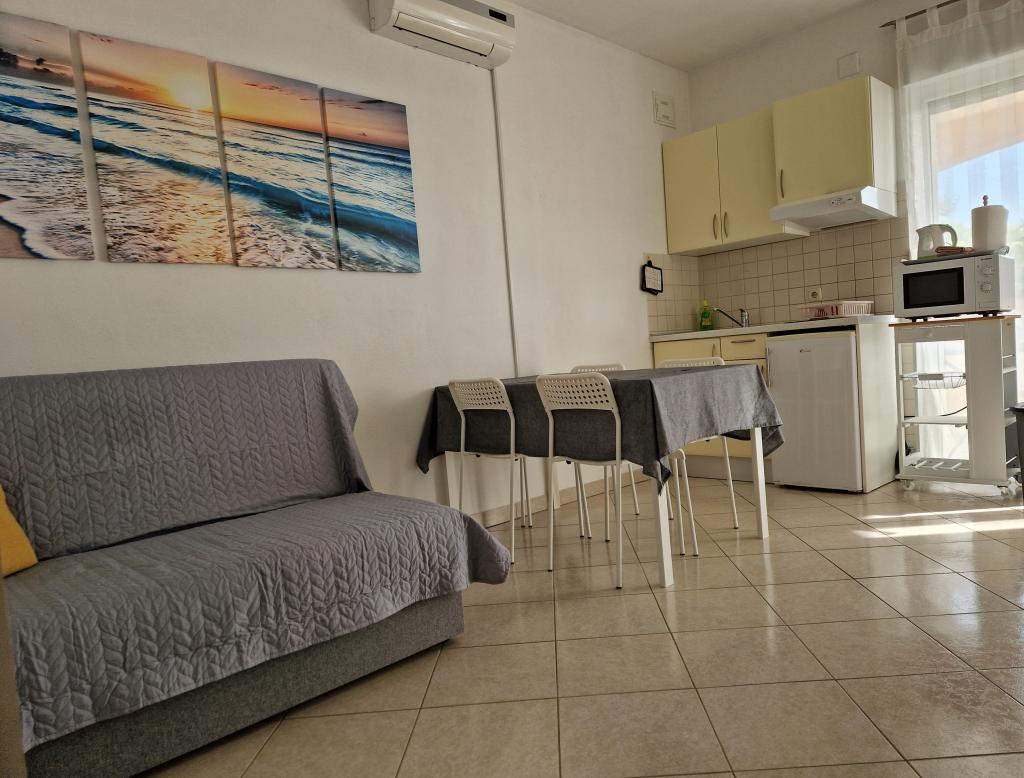 Studio apartmán je velmi prostorný s velkou terasou, majitelé jsou velmi přátelští. V blízkosti je krásná a dobře uspořádaná pláž. Byli jsme velmi spokojeni, vrátíme se.