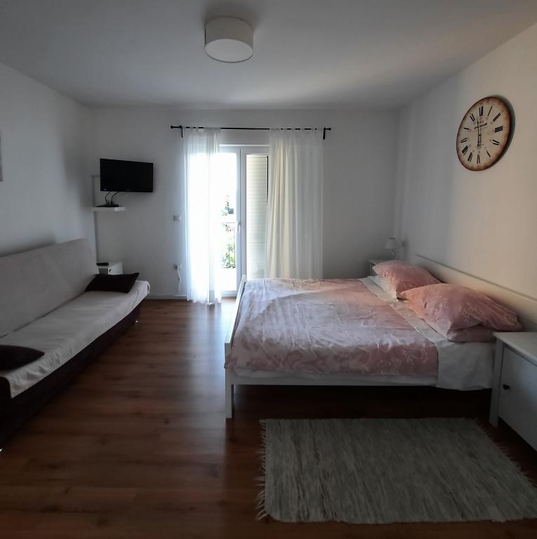 Apartmán s jednou ložnicí (APP 1) a velký studiový apartmán (APP 2) se 4 *, oba o velikosti 38 m2, terasa s výhledem na moře, v 1. patře rodinného domu. V klidné části města, v blízkosti písečných a oblázkových pláží ve vzdálenosti 100 m. Plně vybaven. Ideální, pohodlné ubytování pro dvě osoby nebo pár s dětmi.