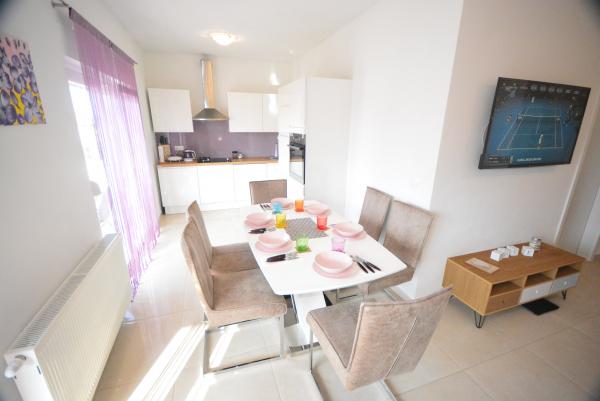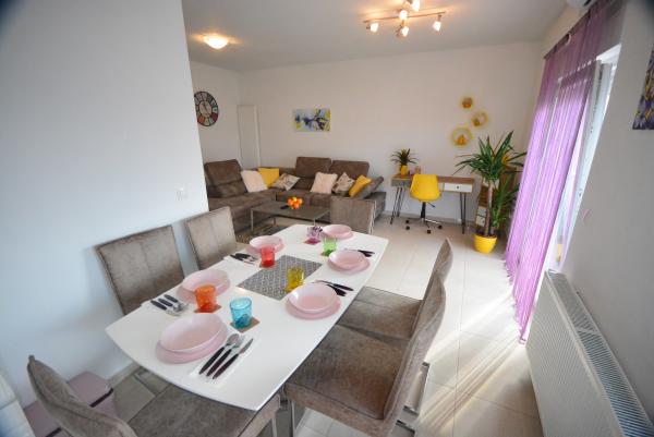 Byt má nový, čistý, uklizený nový nábytek a obrovskou terasu. Veškeré vybavení zahrnuje kuchyň. V blízkosti pláže, na klidném místě. Paula a její rodina jsou velmi milí. Děkujeme, že se v příštím roce vrátíme! Hutvágnerova rodina z Maďarska