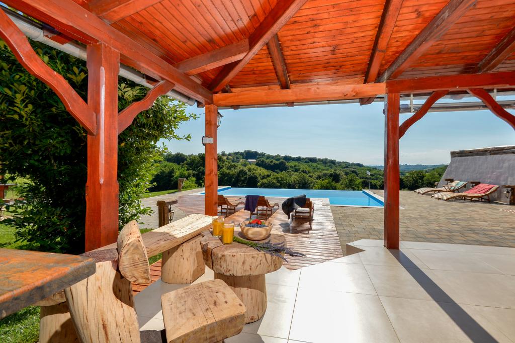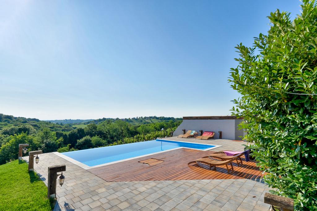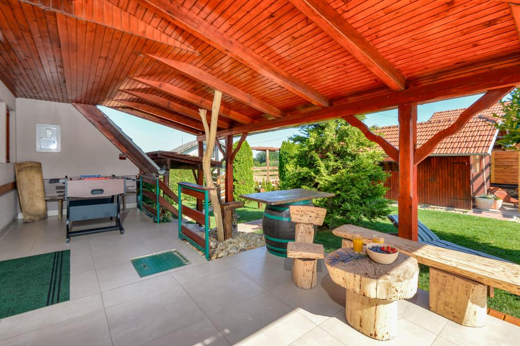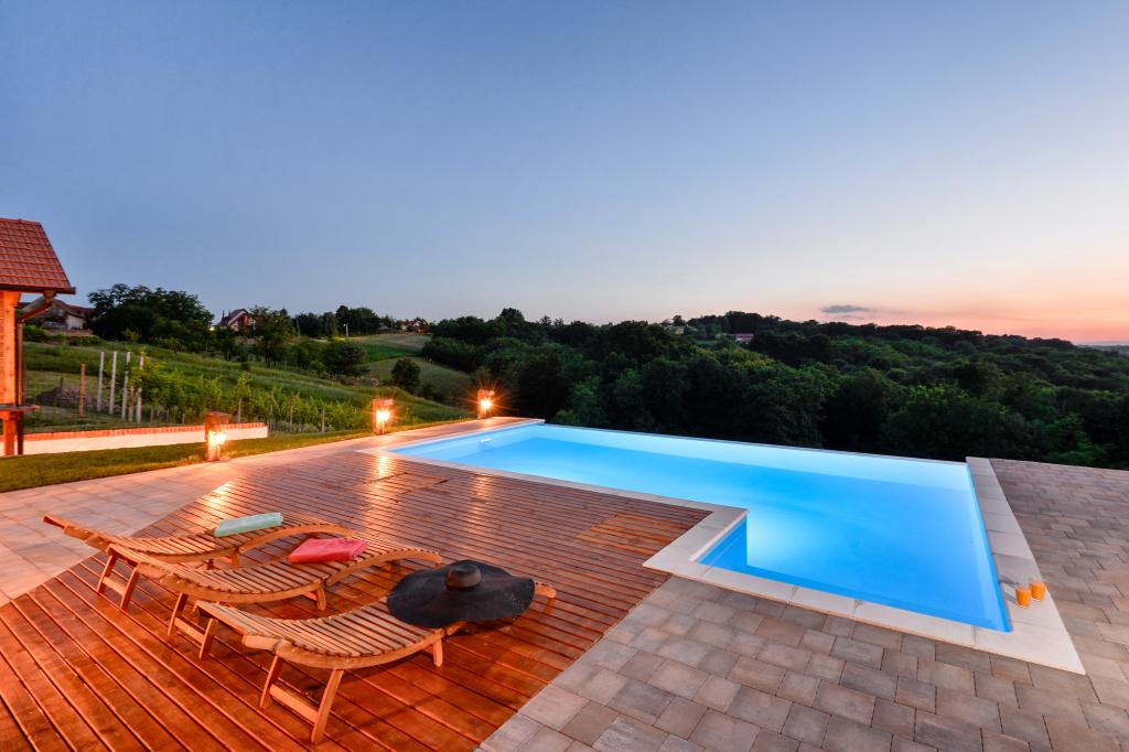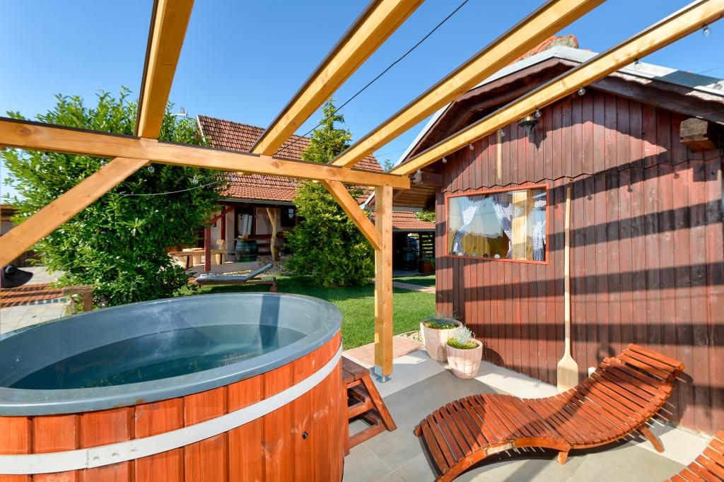 Ideální dovolená od rušného každodenního života Prázdninový dům Holiday Home Dika v Kapelščaku se skládá ze dvou domů, jeden vedle druhého. Můžeme ubytovat až osm osob ve čtyřech ložnicích, se třemi velkými manželskými postelemi a dvěma samostatnými lůžky. Dvě kuchyně uvnitř a jedna venku umožňují přípravu kvalitních jídel. Nabízíme velký venkovní gril na prostorné terase připravený pro rodinná posezení. Sauna doplňuje pobyt v domě a v půvabně vyzdobeném dvoře je bazén s jacuzzi s vyhřívanou vodou. K dispozici je také nekonečný bazén s nádherným výhledem do přírody. V létě můžete hodovat u venkovního krbu a v zimě se zahřát pálením v potašových kamnech nebo jen otočit termostatem a zapnout topení. V suterénu domu najdete lahve pečlivě vybraných vín od međimurských vinařů s možností ochutnat božskou kapku našeho klimatu. Vedle domu je dvůr, ovocný sad a les. Příjemnou procházkou krásnou přírodou horního Međimurje se dostanete do LifeClass Terme Sveti Martin za 25 minut.