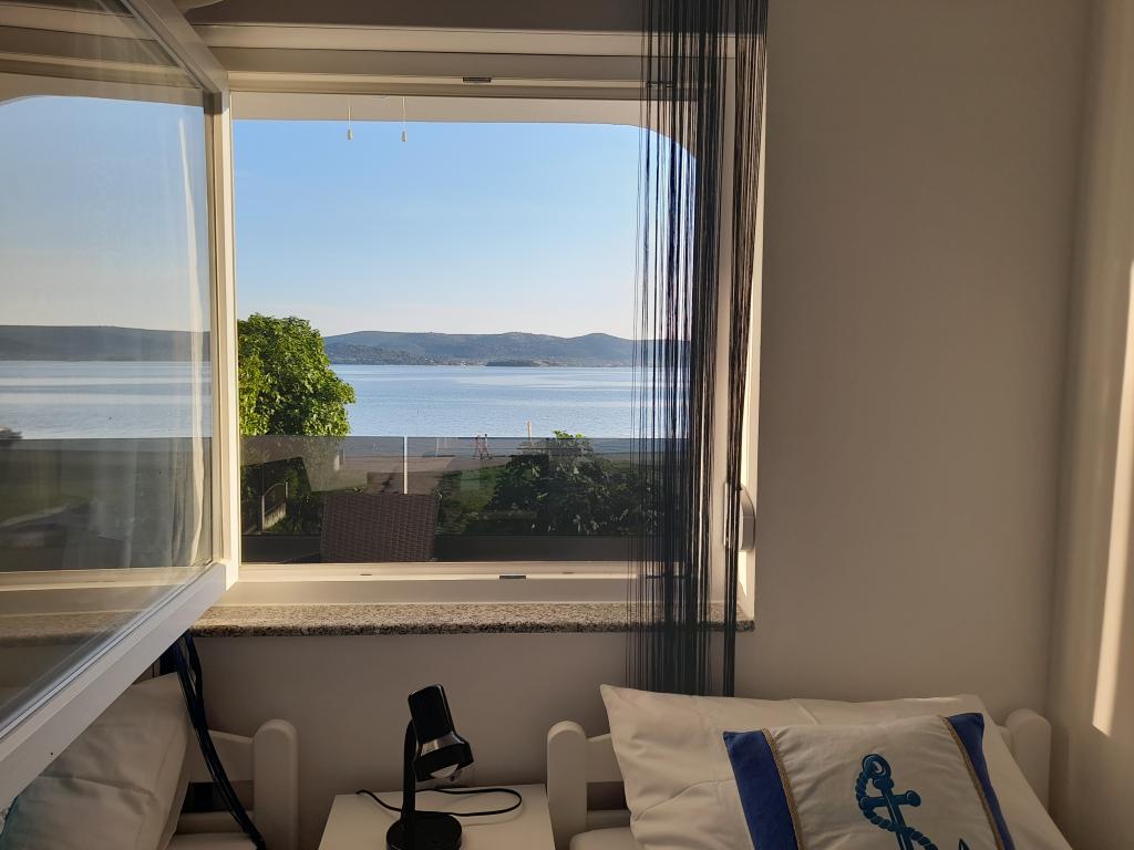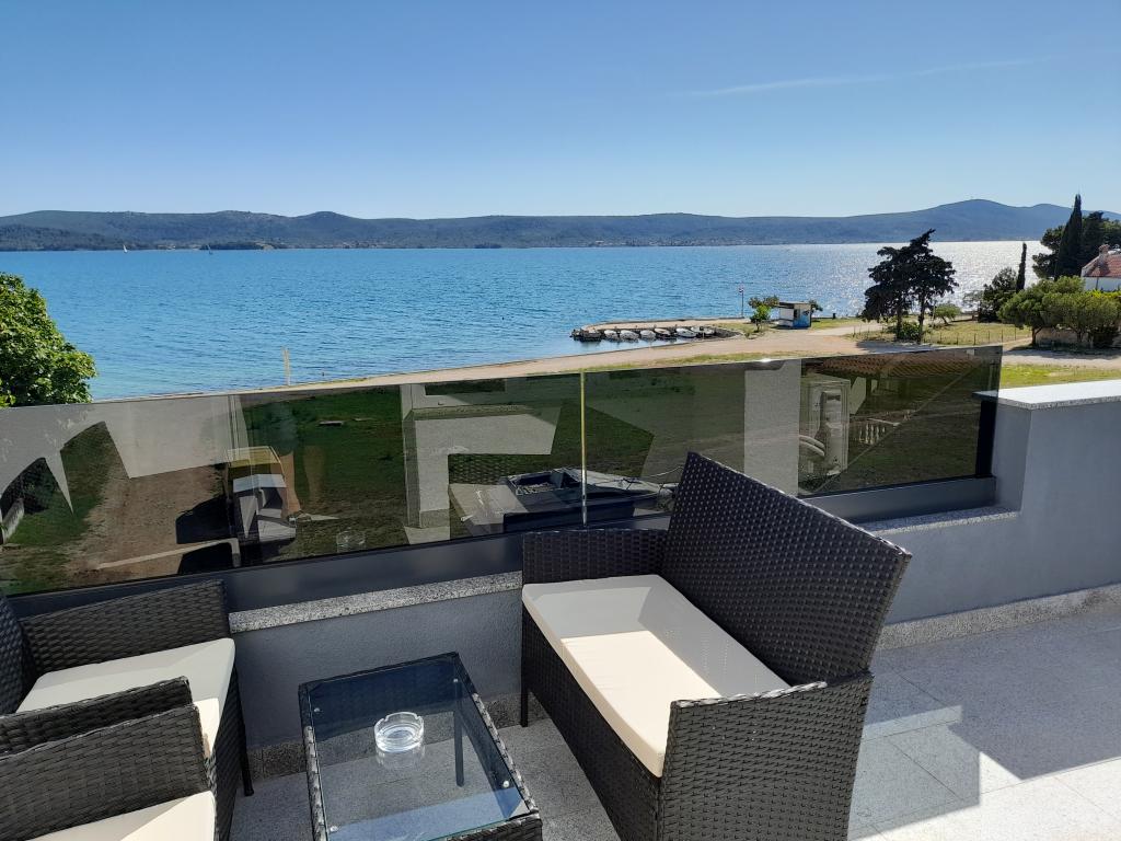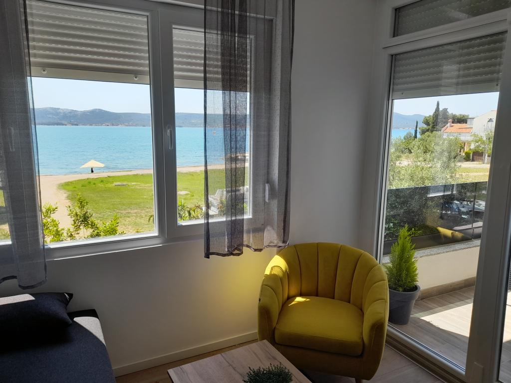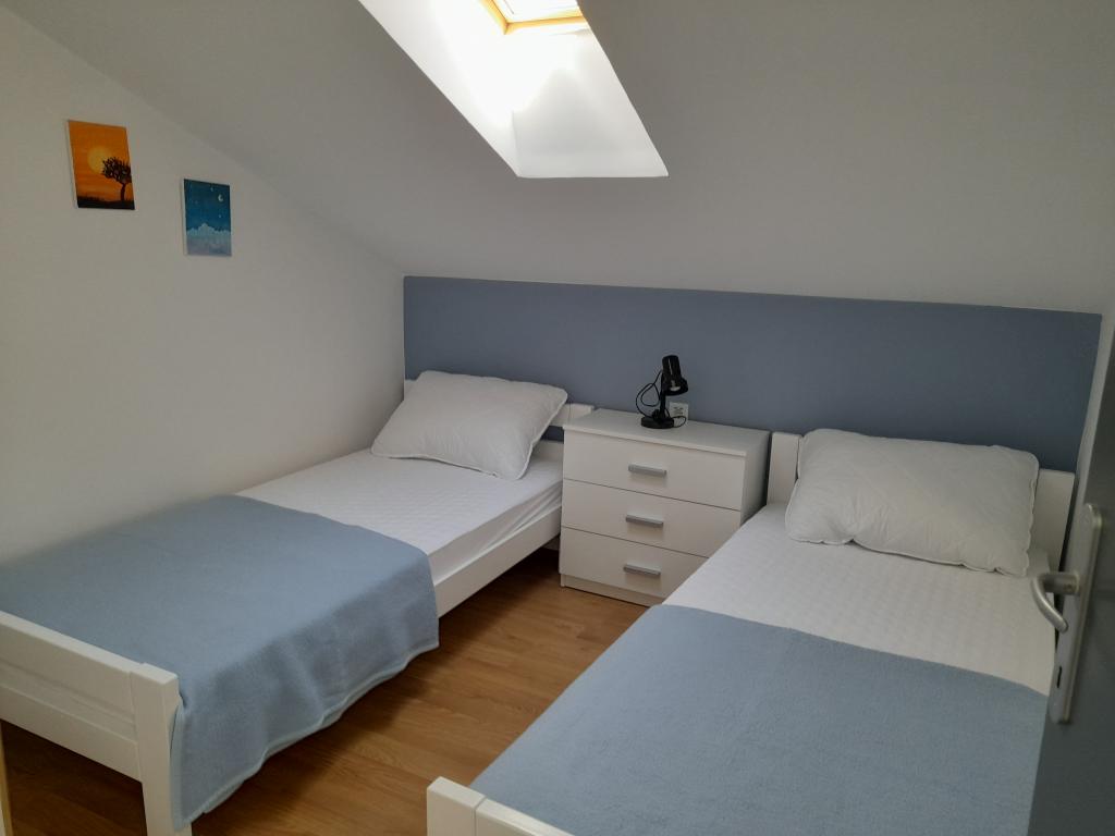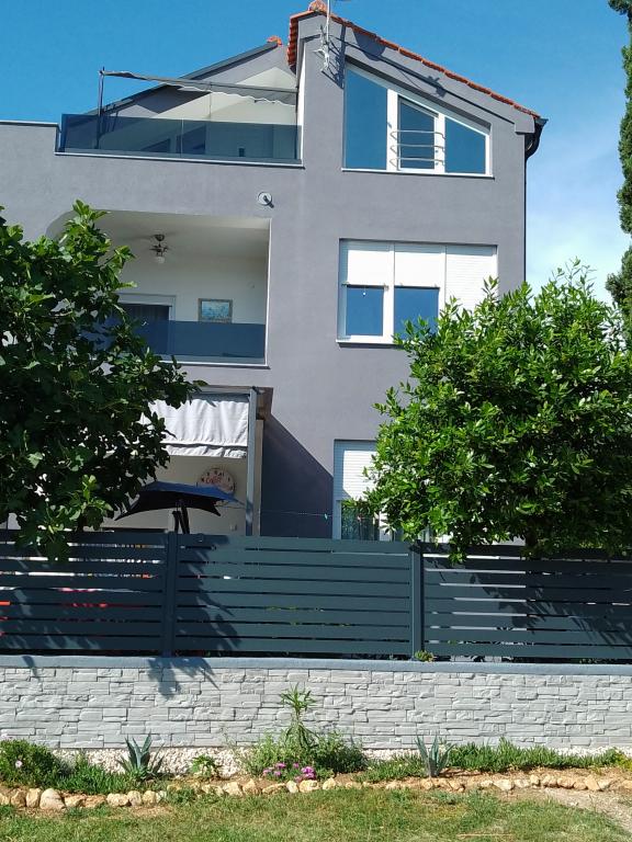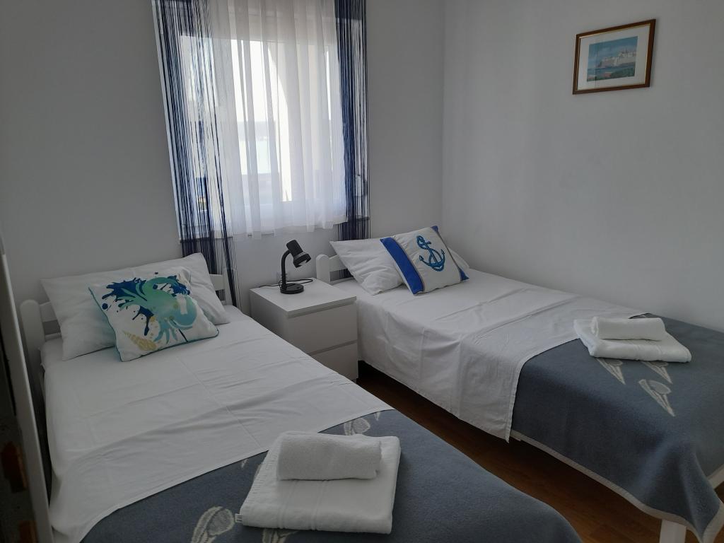 Pronajmu dva moderně zařízené a plně vybavené, klimatizované apartmány s krásným výhledem na moře, které je vzdálené pouhých 60 m. App. 1 (4****) se nachází v prvním patře, má dvě ložnice, koupelnu s pračkou, kuchyň vybavenou všemi spotřebiči (myčka, mikrovlnná trouba, toustovač...), obývací pokoj s vytah. postel a terasa s krásným výhledem na ostrov Pašman. App 2 se nachází v podkroví, má dvě ložnice, kuchyň s obývacím pokojem, koupelnu a terasu s výhledem na moře. Je vybaven úplně stejně jako App 1. Parkování pro auta je zajištěno ve dvoře nebo před dvorem.