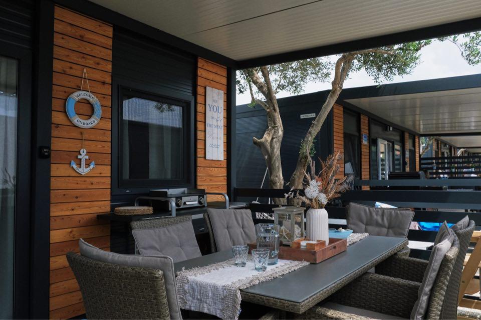Ella je krásný mobilní dům nacházející se ve Sveti Petar na Moru, přímo na pláži, pouhých 10 metrů od moře. Toto jedinečné místo nabízí neuvěřitelný výhled na modré Jaderské moře a dává vám pocit naprosté relaxace a klidu. Ella je výjimečná svým bezplatným koktejlovým barem, který je k dispozici všem hostům. Můžete si vychutnat osvěžující koktejly při relaxaci na terase nebo si užít krásný západ slunce s výhledem na moře. Ella vám navíc nabízí kávovar Nespresso s kapslemi v ceně. Můžete se probudit s vůní čerstvé kávy a začít den tím nejlepším možným způsobem. Pro ty, kteří cestují s domácími mazlíčky, je Ella také vřele vítá. Pro vašeho mazlíčka jsme připravili pelíšek ke spaní a také misky na vodu a jídlo. Takto se vaši čtyřnozí přátelé budou cítit jako doma. V mobilním domě Ella si můžete odpočinout, užít si výhled na moře a pocítit klid a pohodlí.