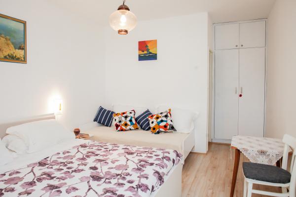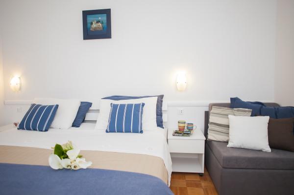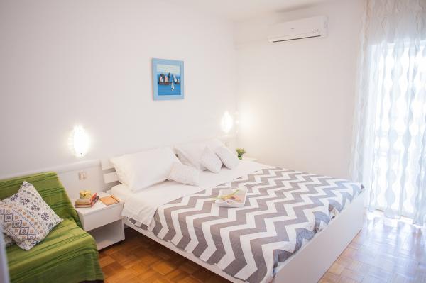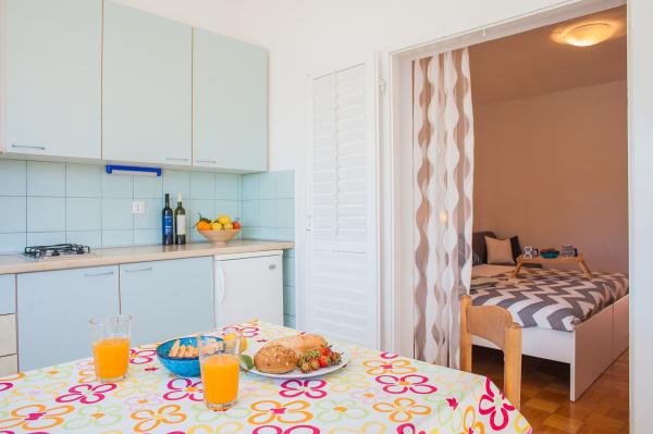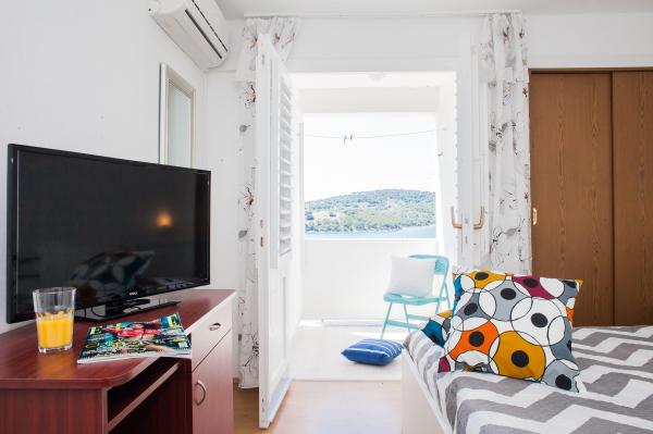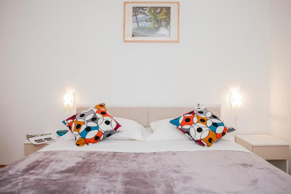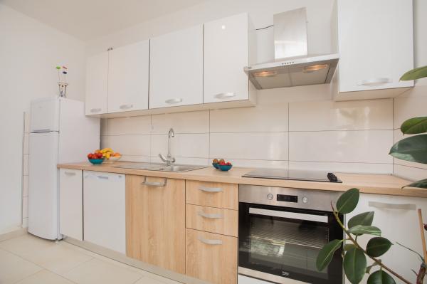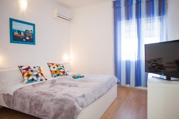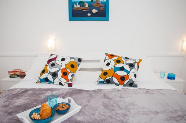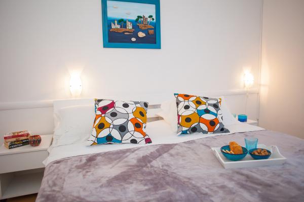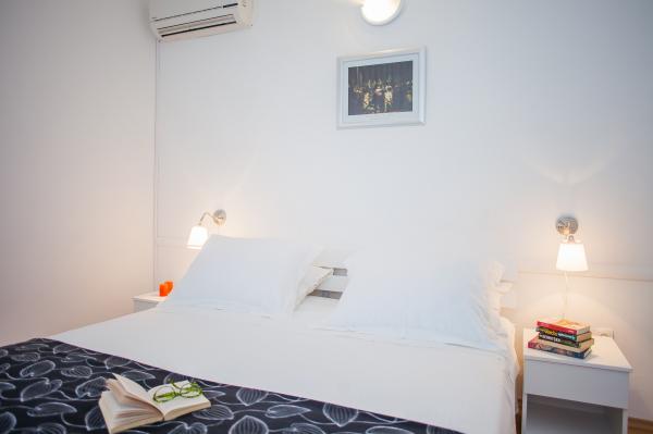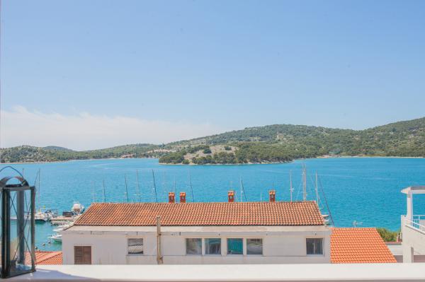 Hana Home – Apartmány s výhledem na moře | Tisno Hana Home nabízí elegantní ubytování v 8 moderně zařízených apartmánech, které se nacházejí pouhých 30 m od moře a nabízí krásný výhled na moře. Pláž Jazina je vzdálená 600 m a centrum Tisna je vzdálené pouhých 10 minut chůze. Všechny apartmány mají balkon, klimatizaci, TV, vysokorychlostní internet a plně vybavenou kuchyň s kávovarem a čajovým příslušenstvím. Hosté mají přístup k prostorné terase s grilem a bezplatnému soukromému parkovišti. Během července a srpna se v Tisnu konají slavné hudební festivaly, zatímco ostrov Murter nabízí četné možnosti k objevování – zátoky, pláže a promenády. Nedaleko se nacházejí národní parky Krka a Kornati a historická města Šibenik, Zadar, Split a Trogir. Tisno má vynikající dopravní spojení, nachází se mezi letišti Zadar a Split, s rychlým přístupem na dálnici. Domácí mazlíčci jsou vítáni po předchozím ohlášení. Těšíme se na váš příjezd. Hana