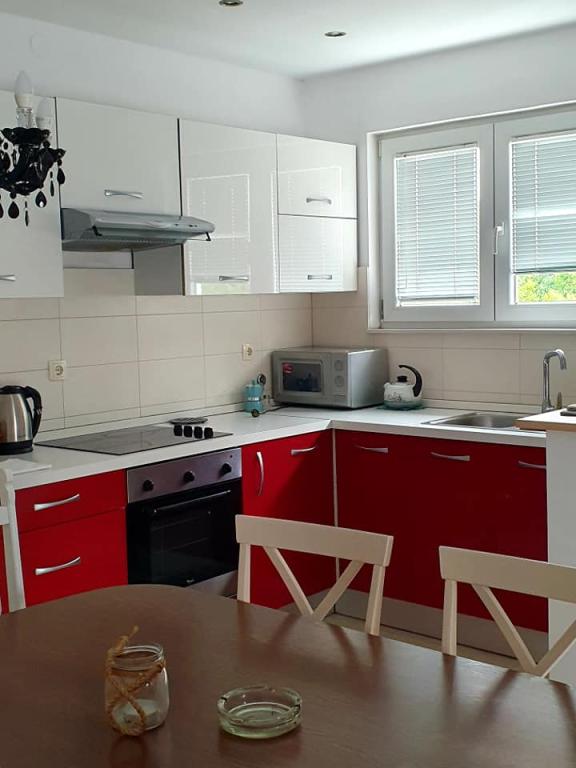 Pokoje a apartmány s krásným výhledem na moře, pouhých 50 m od moře. Všechny mají balkon, kde si můžete odpočinout a vychutnat si krásný výhled na ostrov Murter. Apartmány jsou moderně vybaveny. Každý pokoj má vlastní koupelnu. V každém pokoji je také lednice a rychlovarná konvice. Parkování je zajištěno, stejně jako kotviště pro lodě.