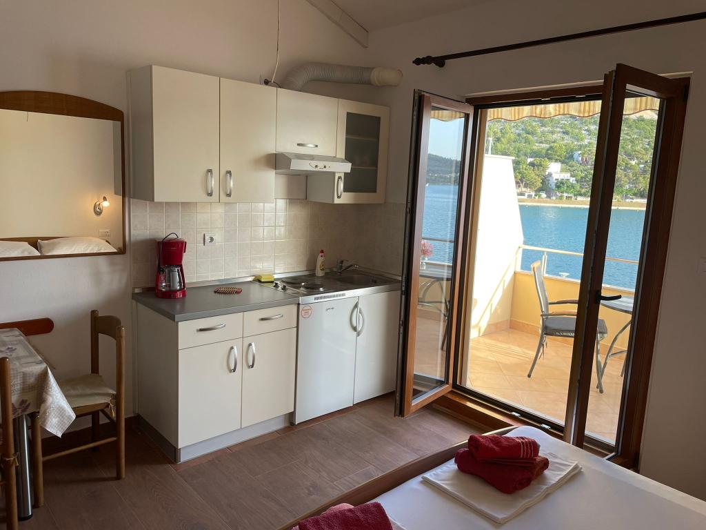 Byt byl velmi čistý a skládá se z ložnice a kuchyně s lednicí a mrazákem, stejně jako přístup na balkon s výhledem na moře. Parkovací místo na pozemku. Velmi přátelský majitel.
