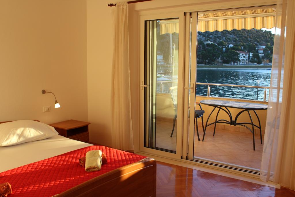 Dům je v blízkosti vody, pěkný výhled na obec Tisno a ostrov Murter. Byt je čistý a čistý. S 2x prostorným balkonem, dobrými okenicemi a klimatizací. Z balkonu krásný výhled, zejména západ slunce ve večerních hodinách. Měli jsme kotviště pro naši loď přímo před bytem, to bylo skvělé! Jere je velmi milý a ochotný a žije také v budově. Mezitím jsme obdrželi extra čisté ložní prádlo a ručníky. Pekařství, supermarket, restaurace atd. Vše v docházkové vzdálenosti. Tam je spousta vidět a zkušenosti v této oblasti. Milovali jsme to tady, bude opět v tomto roce, a pak déle!