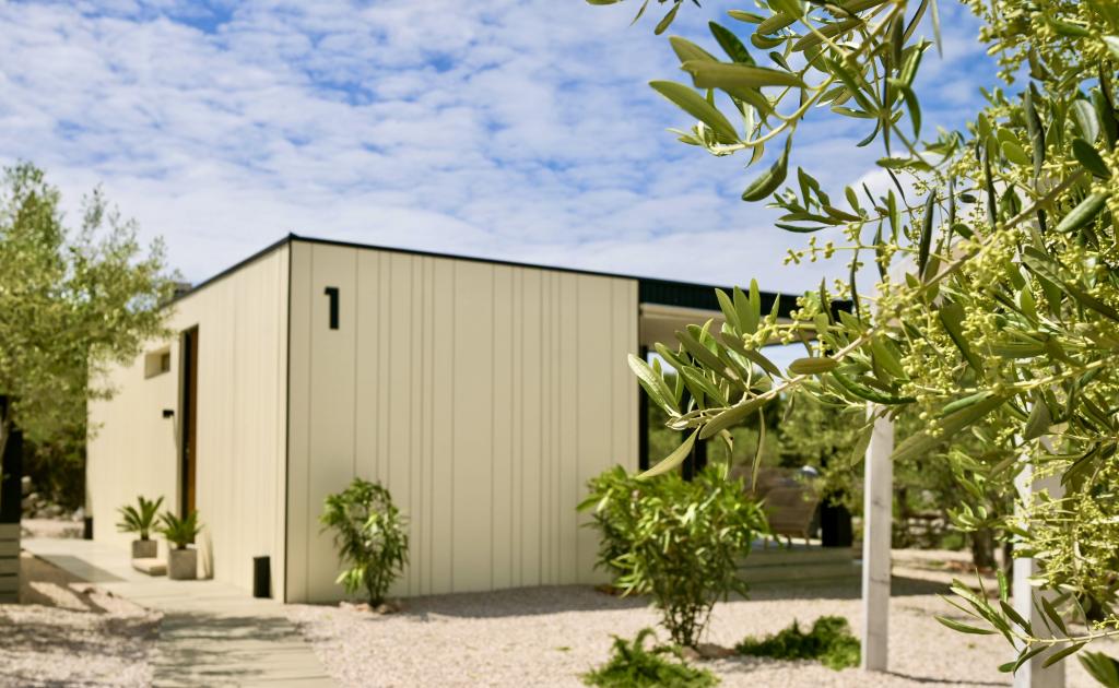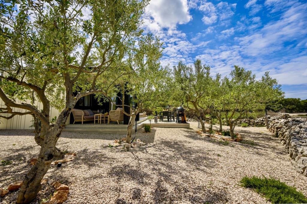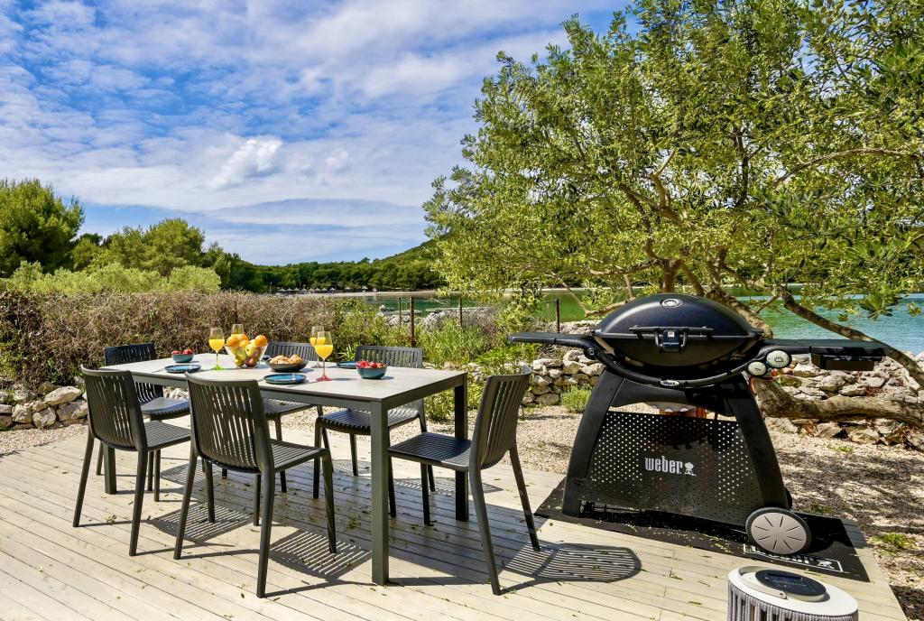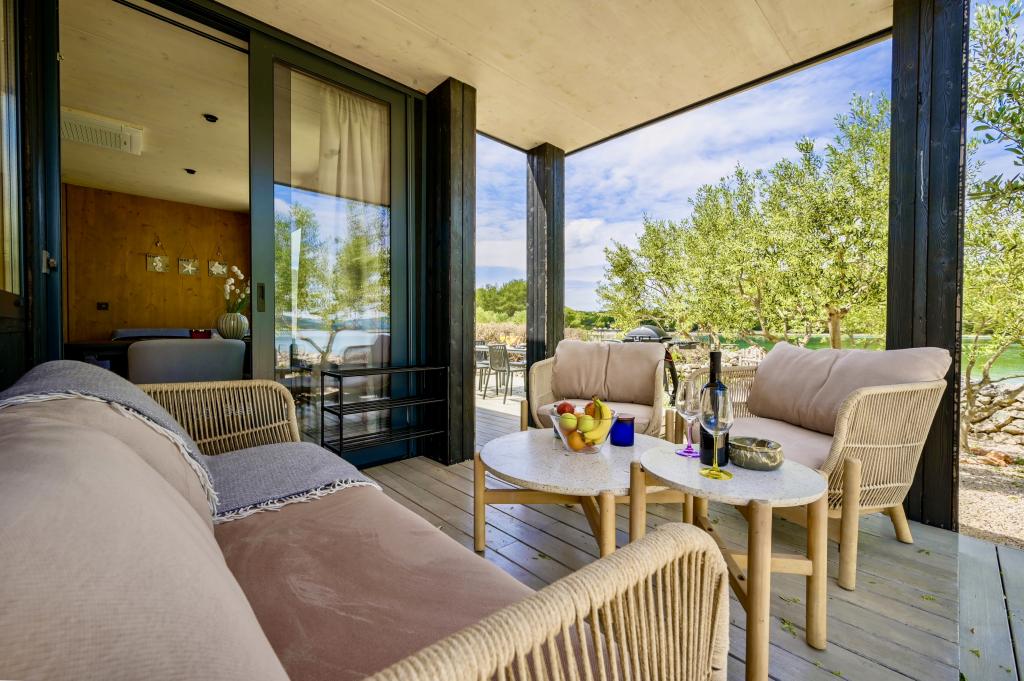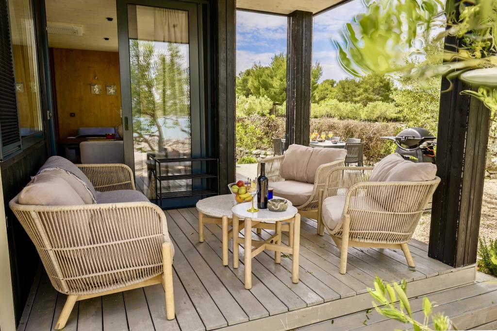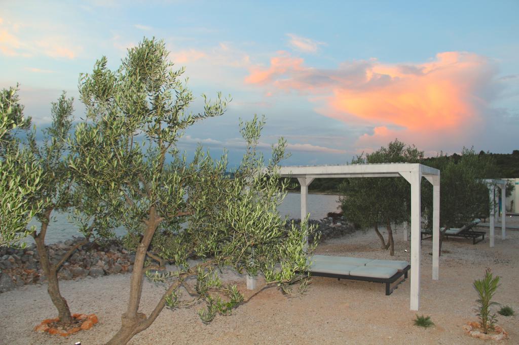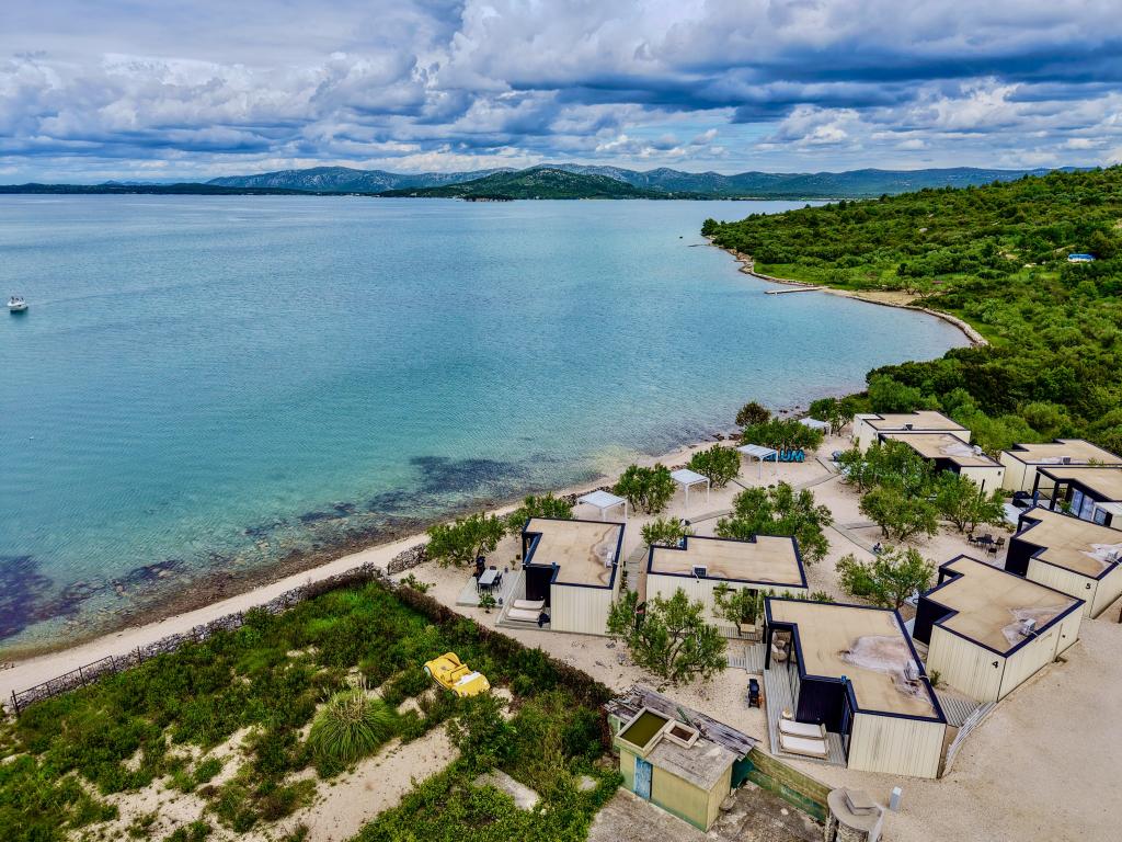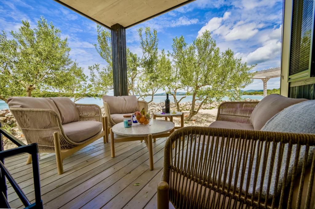 Mobilní dům je jen pár kroků od moře. Moderní interiér apartmánu se snoubí s typickou Dalmáciou. Obklopen bílými oblázky a zelenými olivovníky a před ním je jen nekonečná modř. Moře, slunce a vítr vytvářejí nepopsatelnou hru, která potěší všechny smysly. Ať už spíte v jedné ze dvou ložnic, můžete si ráno užívat modř moře a záři slunce. A z plně vybavené kuchyně se vším potřebným (včetně myčky nádobí a mrazáku) a prostorného jídelního stolu se nabízí nepopsatelný výhled na terasu a všechna kouzla, která slunce a moře nabízí. Ať už si připravujete jídlo v kuchyni nebo grilujete na terase, máte zaručen naprostý klid a soukromí. Cílem každé dovolené je nechat za sebou všední den a rutinu, a přesně to naše zařízení nabízí. Přestože je obklopen 8 podobnými budovami, budete si užívat naprosté soukromí a klid, protože se o vás všichni postarají. Jediným limitem před vámi je nebe a moře.