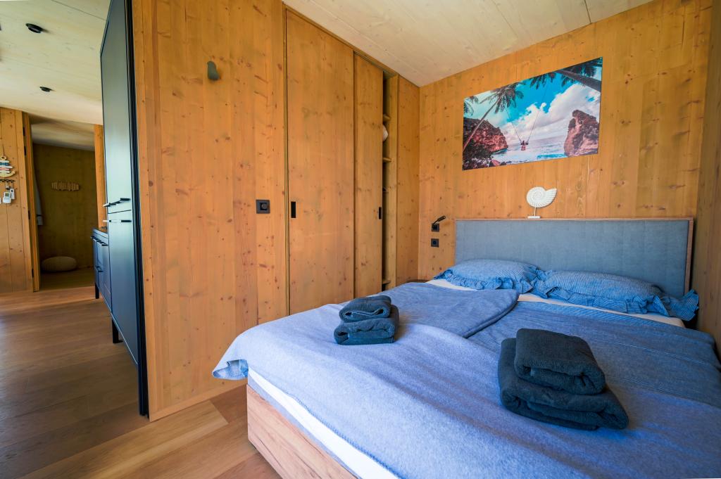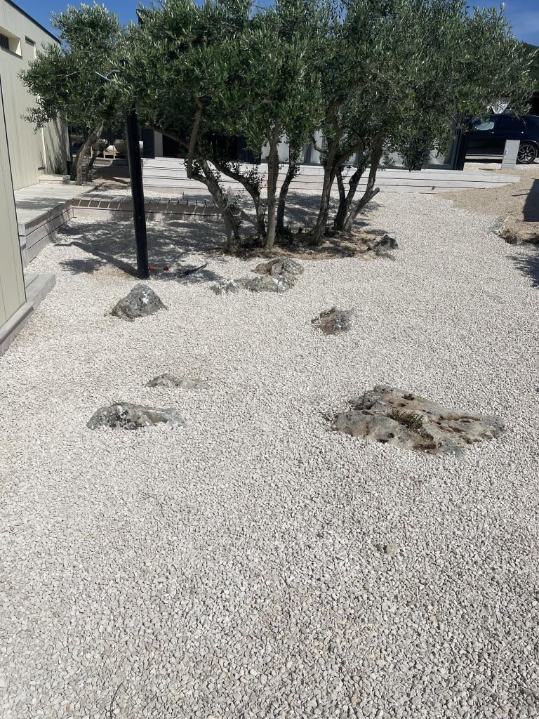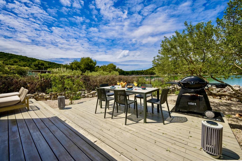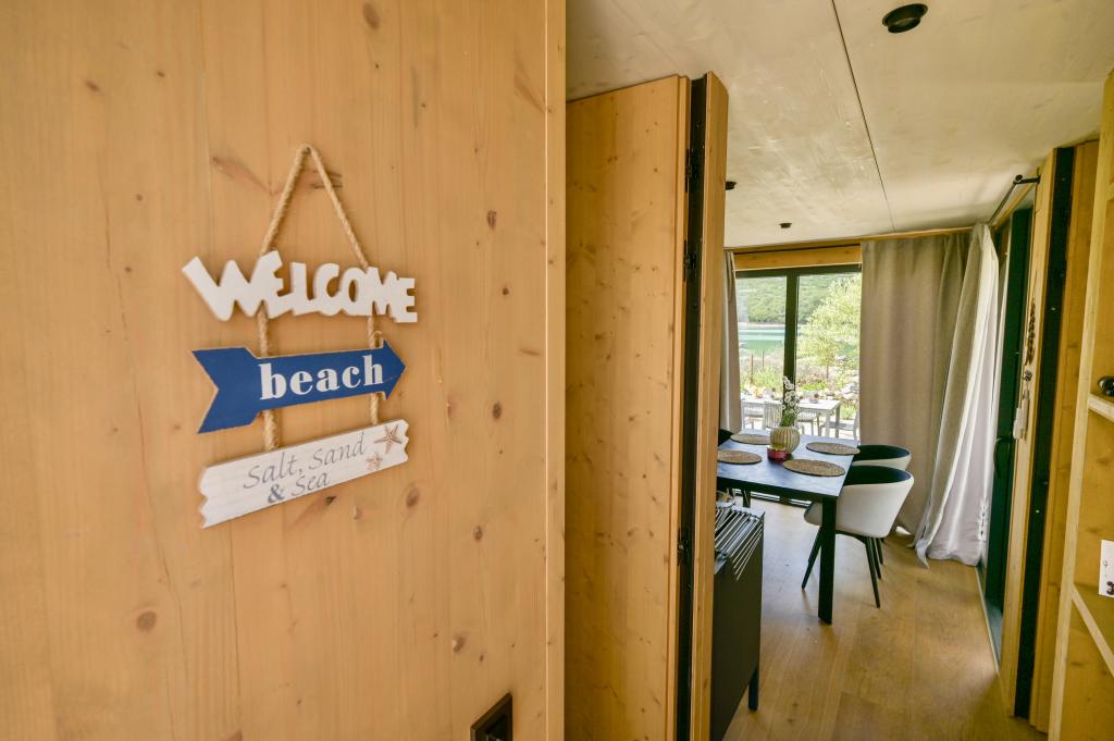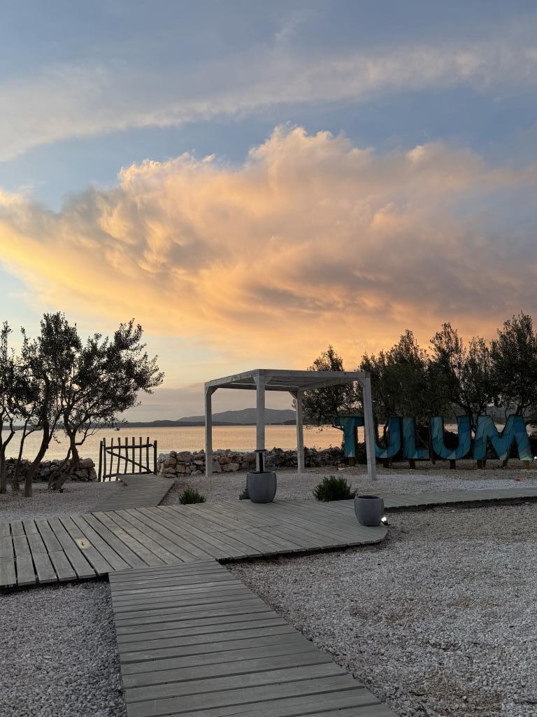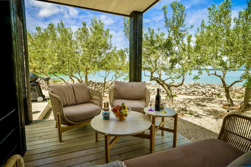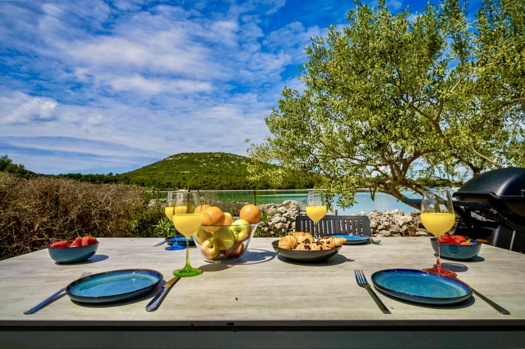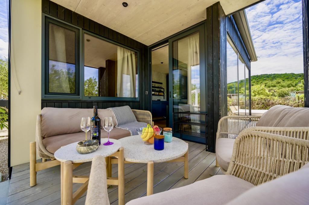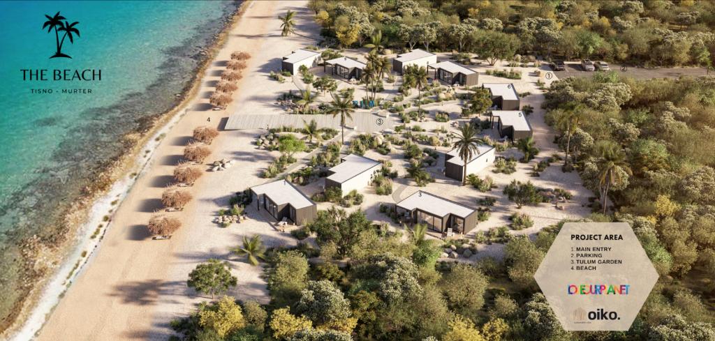 Mobilní dům je jen pár kroků od moře. Moderní interiér apartmánu se snoubí s typickou Dalmáciou. Obklopen bílými oblázky a zelenými olivovníky a před ním je jen nekonečná modř. Moře, slunce a vítr vytvářejí nepopsatelnou hru, která potěší všechny smysly. Ať už spíte v jedné ze dvou ložnic, můžete si ráno užívat modř moře a záři slunce. A z plně vybavené kuchyně se vším potřebným (včetně myčky nádobí a mrazáku) a prostorného jídelního stolu se nabízí nepopsatelný výhled na terasu a všechna kouzla, která slunce a moře nabízí. Ať už si připravujete jídlo v kuchyni nebo grilujete na terase, máte zaručen naprostý klid a soukromí. Cílem každé dovolené je nechat za sebou všední den a rutinu, a přesně to naše zařízení nabízí. Přestože je obklopen 8 podobnými budovami, budete si užívat naprosté soukromí a klid, protože se o vás všichni postarají. Jediným limitem před vámi je nebe a moře.