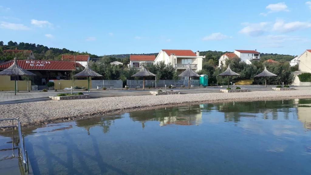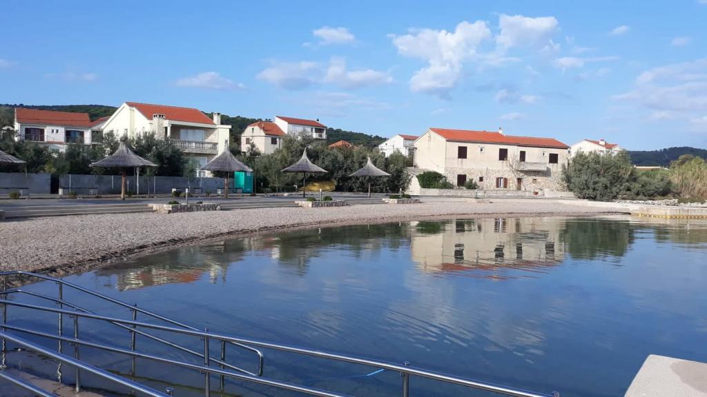 Apartmány se nacházejí v malé obci nedaleko Ugrinič Tkon na ostrově Pašman. Tyto apartmány se nacházejí v rodinném domě po dobu 3 minut na pláž. Beach nově zařízené s deštníky. (Pjeskovitošljunčana) Parkování ve dvoře v přední části bytu. Máme kotviště pro malé lodě. Kdy majitel může koupit: brambory, cibule rajče, olivový olej, domácí červené a bílé víno, sušené fíky a celý zbytek vlastní výroby.