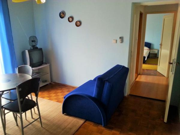 Apartmán, který jsme si pronajali, můžu jen pochválit, byl bezvadně čistý. Kromě dvou ložnic je tam opravdu velký obývací pokoj s rozkládací pohovkou a nová klimatizace (velmi kvalitní). Tyto fotky jsou staré, protože teď tam zařídili obrovskou terasu s východem z obývacího pokoje, balkon z ložnice zůstal. Terasa má stín celý den (kromě těch časných rán od 6:00 do 7:00). Pláž je přes zahradu. Vyzkoušeli jsme mnoho apartmánů. Tento je nejlepší, co se týče lokality, čistoty a ceny. Děkujeme nájemcům, jako jsou paní Irena a pan Ivica Lukačić.