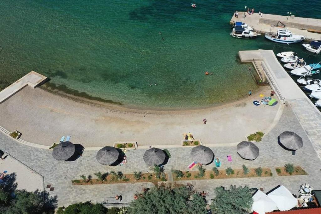 Krásné scenérie malého dalmatského města, nedotčené přírody a v těsné blízkosti moře jsou jen některé z důvodů, proč strávit klidnou a pohodovou dovolenou v Ugrinič, nedaleko od Tkon na ostrově Pašman, daleko od hluku a shonu. Dům se třemi samostatnými apartmány se nachází jen pár kroků od pláže a je obklopen zelené trávníky, olivovníky a tamaryšek; vám poskytuje ideální prostředí pro odpočinek a relaxaci, zatímco hosté, kteří hledají dobrodružství, můžete strávit mnoho tras, které křižují vnitrozemí ostrova, vhodný pro cykloturistiku a pěší turistiku a těší scenérie a krásu našeho ostrova. V zahradě se nachází gril, trávník, dětské hřiště a parkoviště. Perfektní volba pro rodiny a přátele, protože je v klidné části, přesto nedaleko centra.