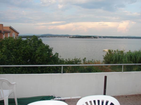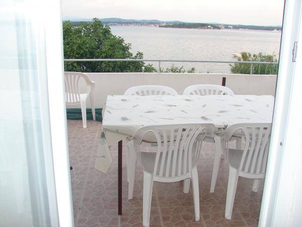 Dům v klidné části Tkonu na ostrově Pašman, příjezd do města je trajektem, který jezdí každou hodinu v případě potřeby i častěji z Biogradu. Dům, ve kterém se apartmány nacházejí, se nachází v první řadě k moři 10 metrů, plocha apartmánu je 130 m2, do centra je to 10 minut chůze, před domem je velké parkoviště, apartmány jsou vybaveny vším potřebným pro přípravu jídla a pití, wi-fi, klimatizace, TV, venkovní sprcha, gril. Dispozice apartmánu je tři ložnice plus další dětský pokoj, koupelna a WC, plus další WC, velká terasa s výhledem na moře, kuchyň a velký obývací pokoj. Krytá terasa pro opalování a společenské posezení je propojena s kuchyní, s výhledem na moře a okolí. Apartmány jsou výhradně k pronájmu, lze pronajmout celý dům, ideální pro rodinu.