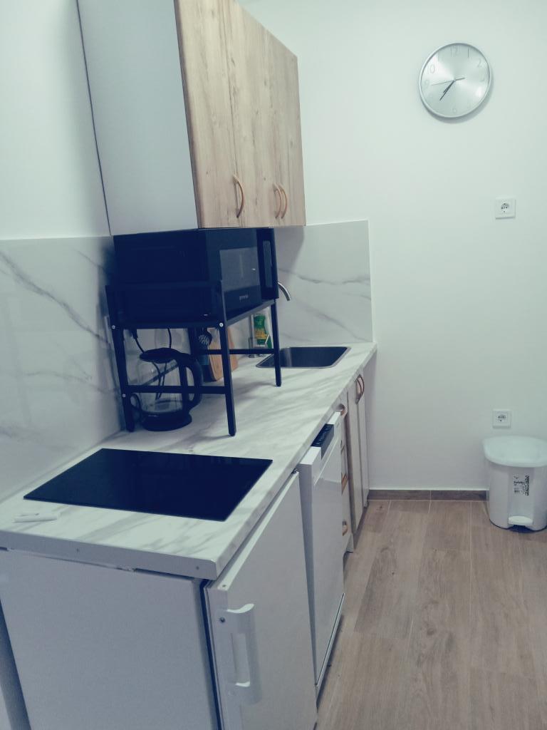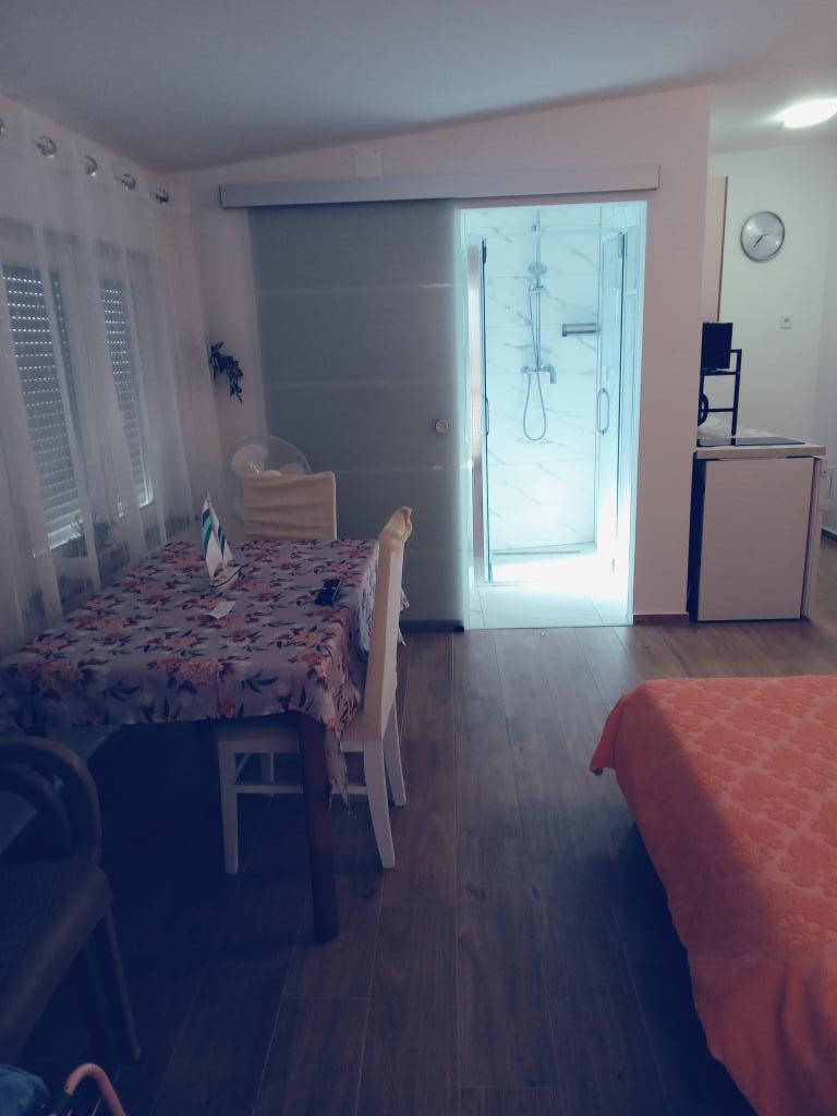 Vítejte! Plně zařízený a vybavený apartmán pro dvě osoby. 200 m od moře a pláže a 200 m od centra. Apartmán má kuchyň, koupelnu, ložnici a balkon. TV, satelit, klimatizace, wi-fi, mikrovlnná trouba, kávovar. Dvůr před budovou, parkování se zavřenými vraty a zařízená zahrada a terasa před budovou, kde si můžete dát kávu jako uvítací dárek v den příjezdu do apartmánu. Před budovou ve dvoře je gril, který mohou využívat všichni naši hosté z apartmánu.