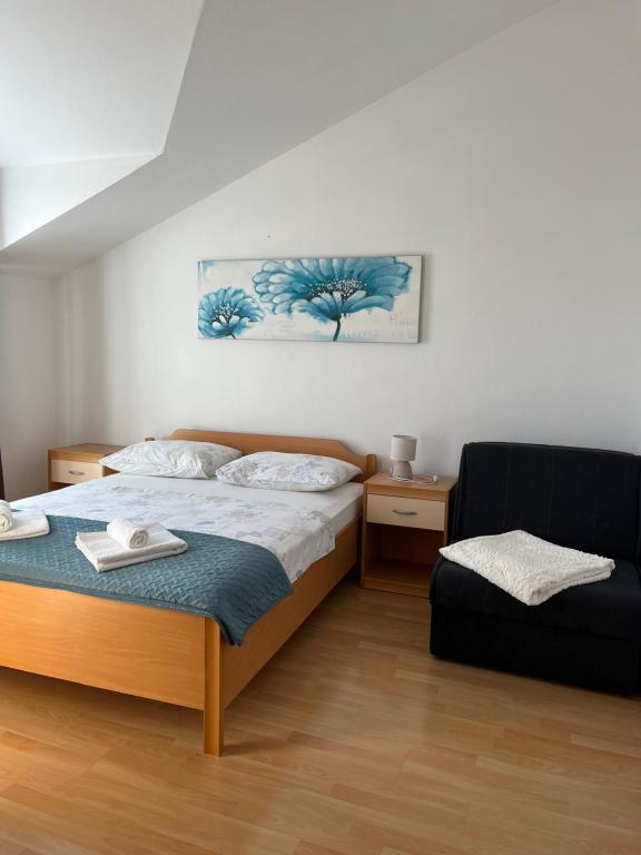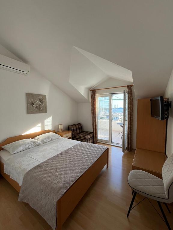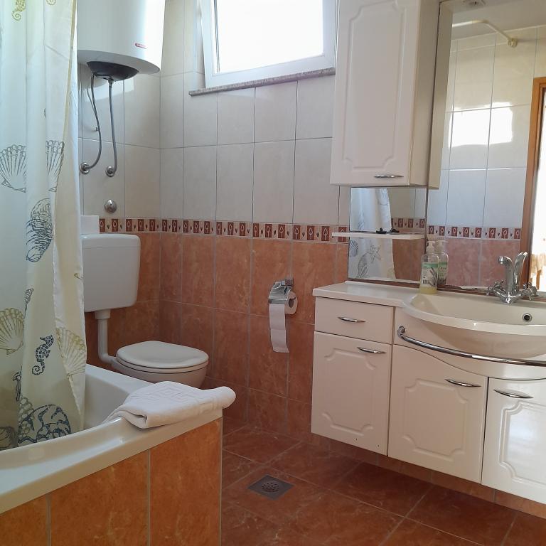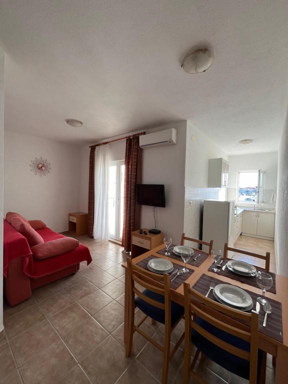 Apartmány Agata jsou Tribunju, v blízkosti přístavu, pláž je jen 3 minuty chůze. V prvním patře jsou dva apartmány s jednou ložnicí (A1, A2) s přistýlkou v jídelně / obývacím pokoji.