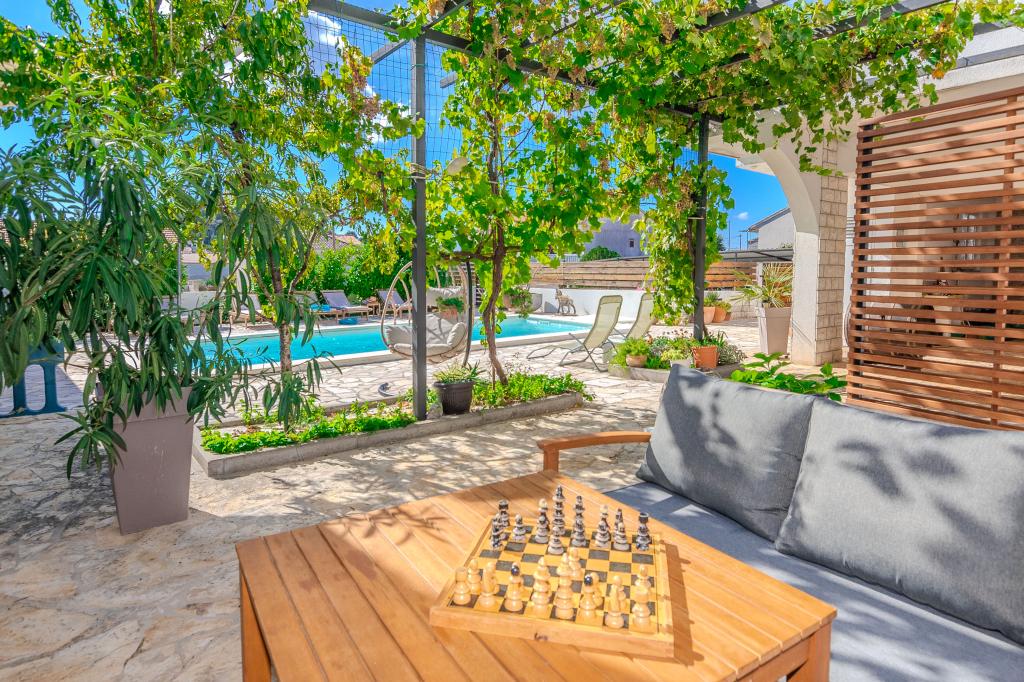 Apartmány se nacházejí v malé rybářské vesnici Tribunj. Krátkou a snadnou procházkou od domu k trhu si můžete každý den koupit čerstvé ryby, sezónní ovoce a zeleninu. Velká zahrada s bazénem a dalším vybavením vám zpříjemní dovolenou. Z Tribunje se organizují výlety lodí do Národního parku Kornati.