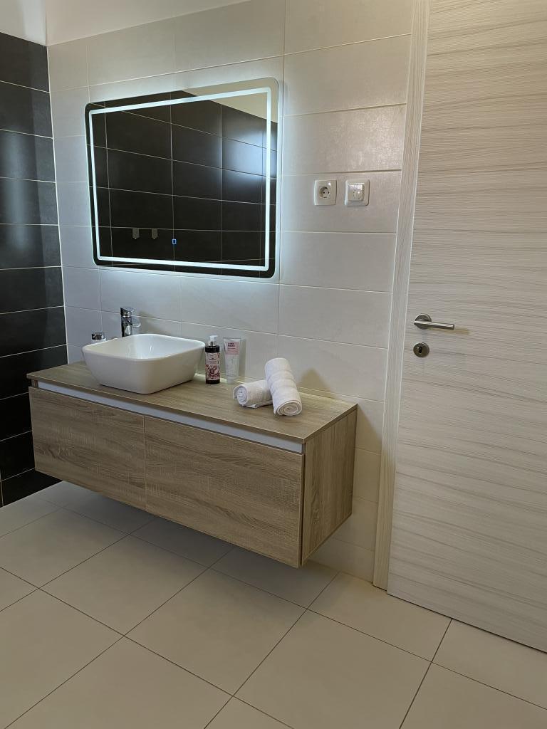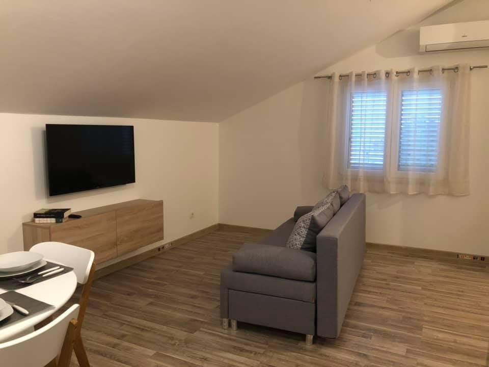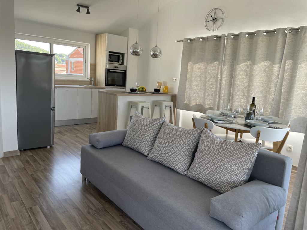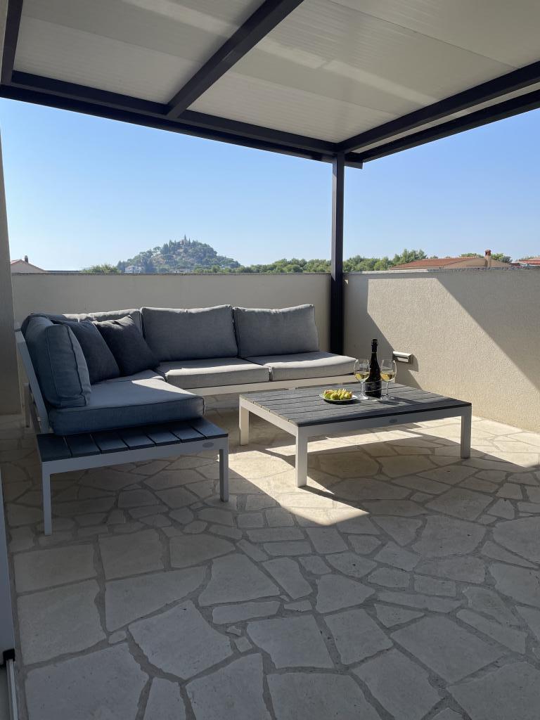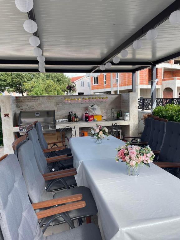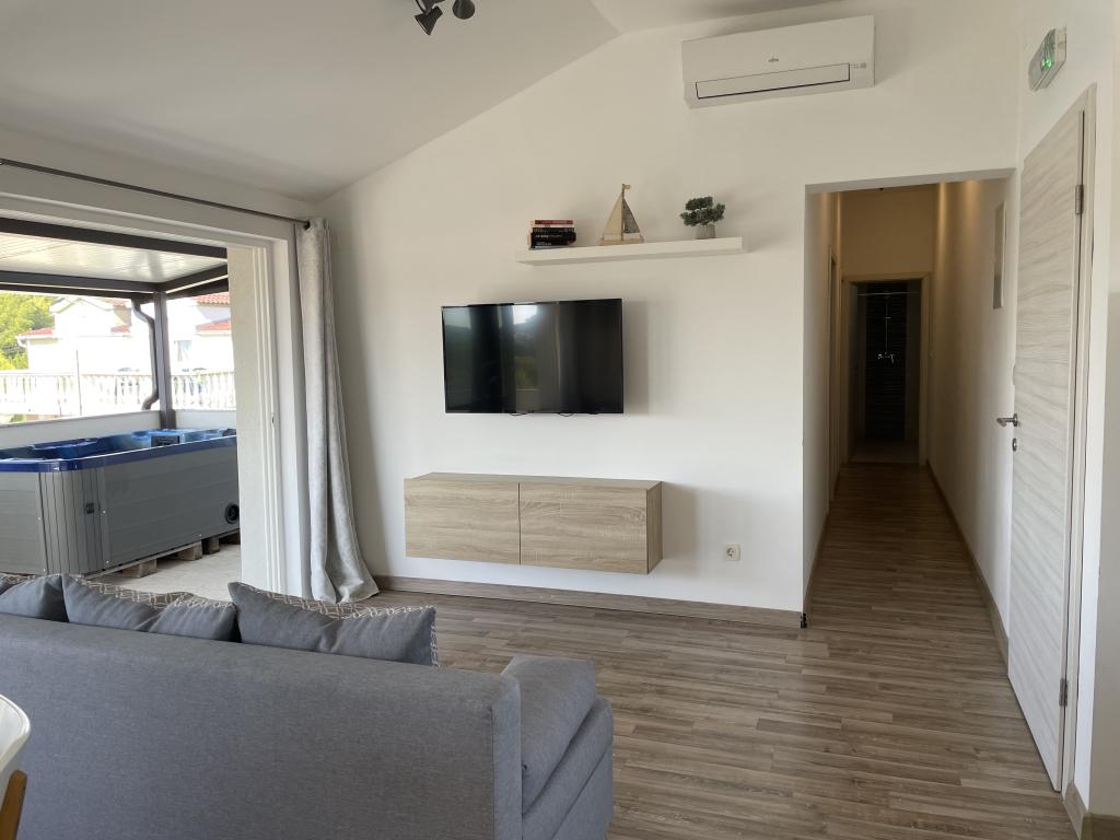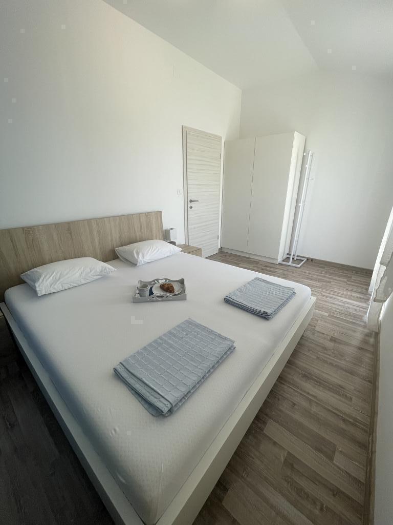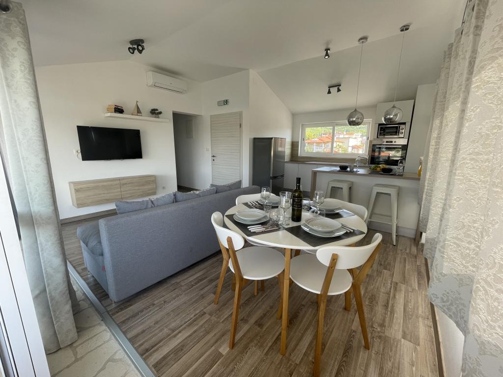 Plně a moderně vybavené apartmány v klidné oblasti, pouhých 300 m od pláže s mnoha vymoženostmi. Apartmány se nacházejí ve druhém patře rodinného domu, v oploceném dvoře si můžete užít krytou zónu pro posezení s letní kuchyní a grilem. Soukromé parkoviště se nachází před domem. 50 m od domu se nachází autobusová zastávka a 200 m od domu je první obchod. Centrum města je vzdálené 800 m, dostanete se tam po silnici nebo po promenádě, která se táhne podél moře. Milujeme zvířata, ale nejsme přátelští k domácím mazlíčkům.
