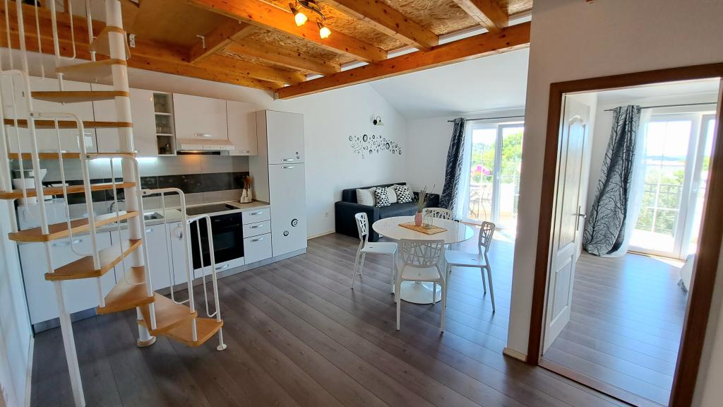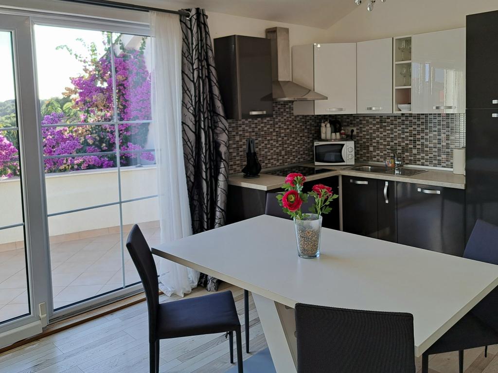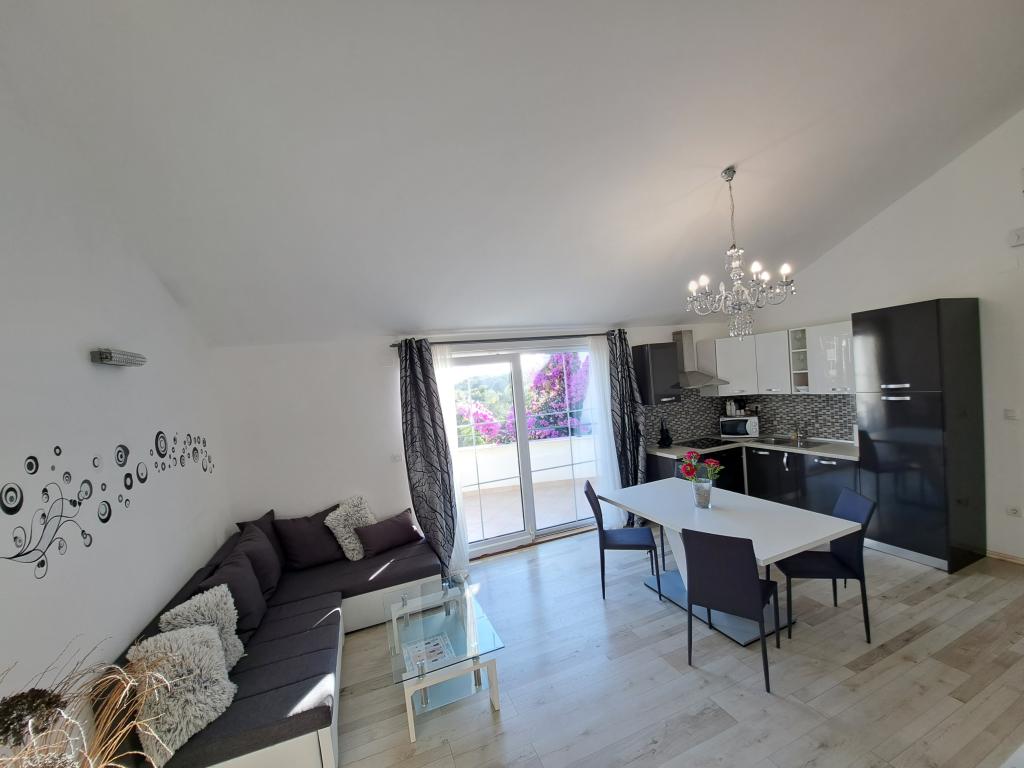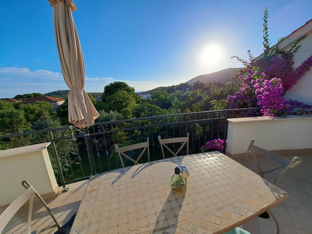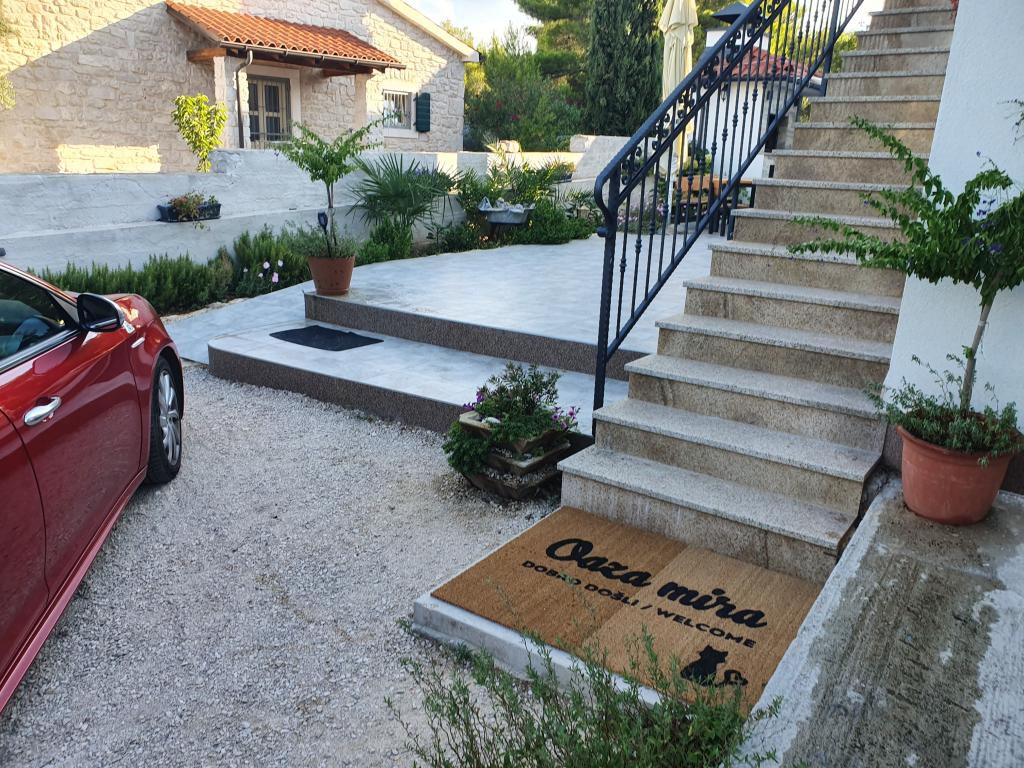 Apartmány "OAZA MIRA" se nacházejí v soukromém rodinném domě, 3 apartmány, kapacita od 4 do 18 osob. Obklopen zelení a květinami, odpočinek pro oči i uši. Zde vás uspí a probudí ptáci. Apartmány, které nabízíme, mají velikost 65 m², dva jsou dvoupatrové (galerie s ložnicí o velikosti přibližně 20 m²). Všechny apartmány mají dvě ložnice, jídelnu, plně vybavenou kuchyň, kde najdete vše, co potřebujete (mikrovlnná trouba, toustovač, trouba, kávovar, pračka), velké koupelny. Apartmány jsou prostorné a klimatizované. Bezplatný internet (wi-fi), satelitní TV. Všechny apartmány mají terasu nebo balkon s výhledem na moře, zahradu a kopce. Bezplatné soukromé parkování je k dispozici v budově a rezervace není nutná.