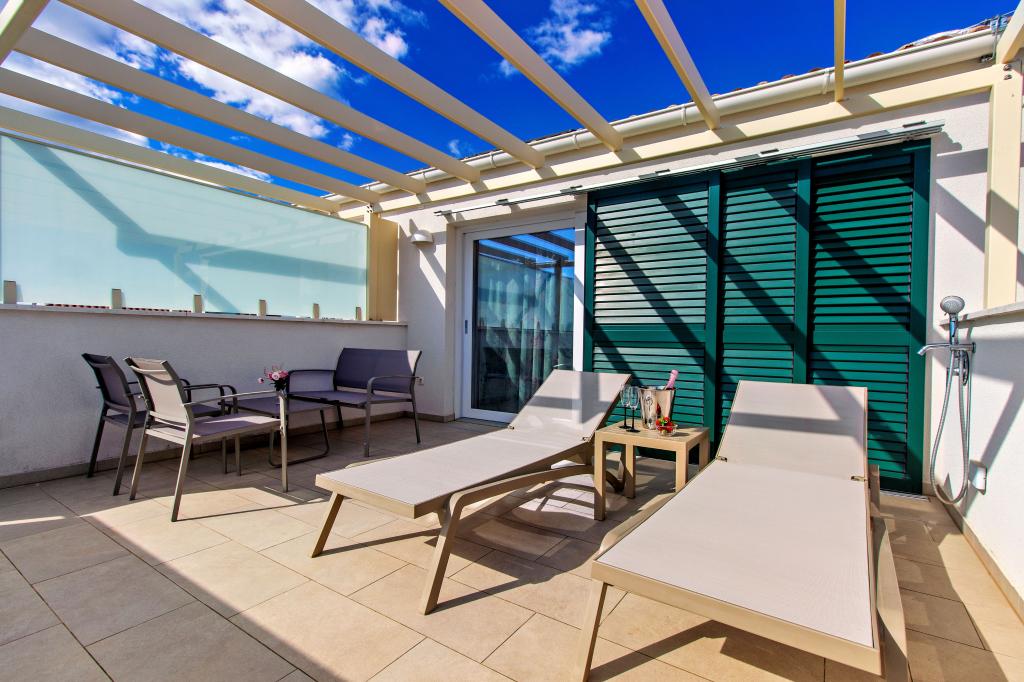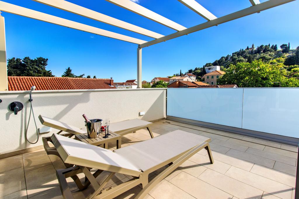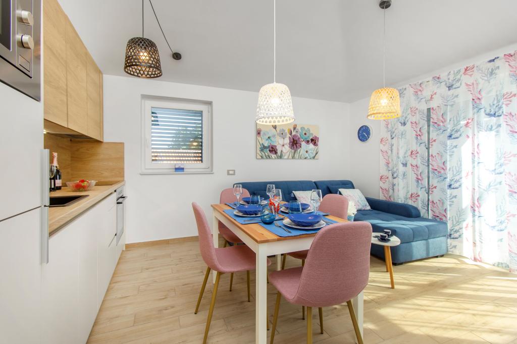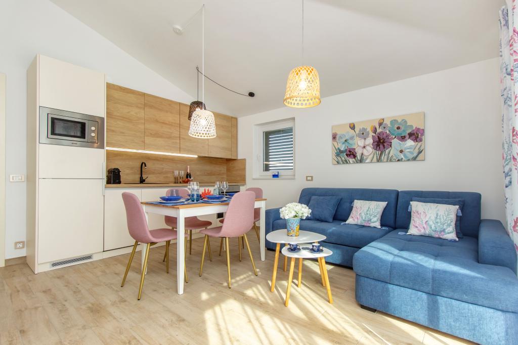 Zařízení Three Olives je nová budova a své brány hostům otevírá poprvé od léta 2024. Na dvoře budovy stojí tři staré olivovníky, dřevo tak typické pro chorvatské pobřeží a ostrovy, z jejichž plodů se získává nejkvalitnější olej, často nazývaný "tekuté zlato". Název Tři olivy naznačuje prostředí klidu, míru a hojnosti. Apartmány v budově jsou jedinečné, moderní a plně funkčně vybavené, abyste se cítili pohodlně jako ve svém vlastním domě! Objekt je výborně umístěn; nachází se 150 m od moře a 200 m od centra města. V bezprostřední blízkosti nejsou žádné hlavní silnice ani obchodní zařízení, takže hosté mají jistotu klidu ve dne i v noci. Zkrátka vše je připraveno pro vaši kompletní dovolenou.