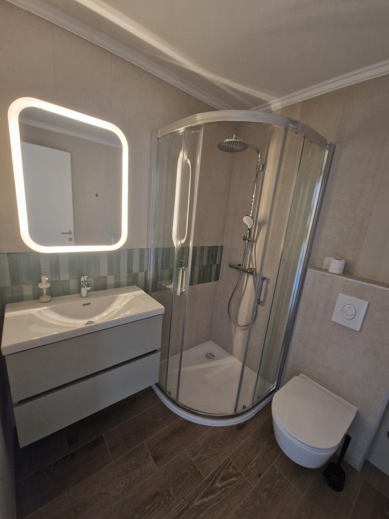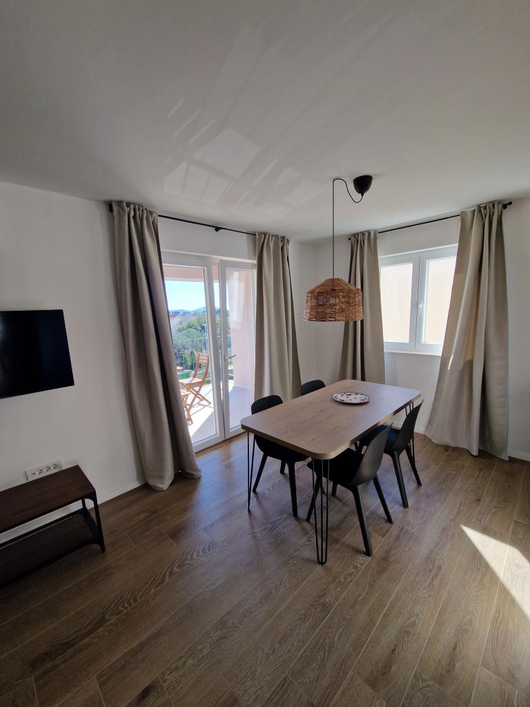 Apartmány Tribunj Cvitan jsou plně a moderně vybavené. Objekt se nachází v klidné ulici v Tribunji (Sovlje). Apartmány jsou v 1. patře, kam se dostanete po samostatném venkovním schodišti. Pro hosty apartmánů je zajištěno parkování a vchod do objektu je oplocen automatickou vstupní branou. Objekt se nachází 5 minut chůze od moře a vedle několika dobrých pláží v okolí, přičemž nejblíže objektu je pláž Sovlje. Apartmány mají jeden pokoj s manželskou postelí a jednu přistýlku v jídelně. V ložnici je noční stolek s osvětlením vedle postele a velké skříně. Kuchyň je vybavena všemi potřebnými prvky, včetně myčky nádobí. Apartmány mají také velké polokryté balkony, které jsou od úsvitu po většinu dne orientovány na východ, takže si můžete na balkonech odpočinout na slunci téměř celý den. Koupelny jsou moderně zařízené sprchovými kabinami. Apartmány mají v jídelnách televizory a bezplatné Wi-Fi.
