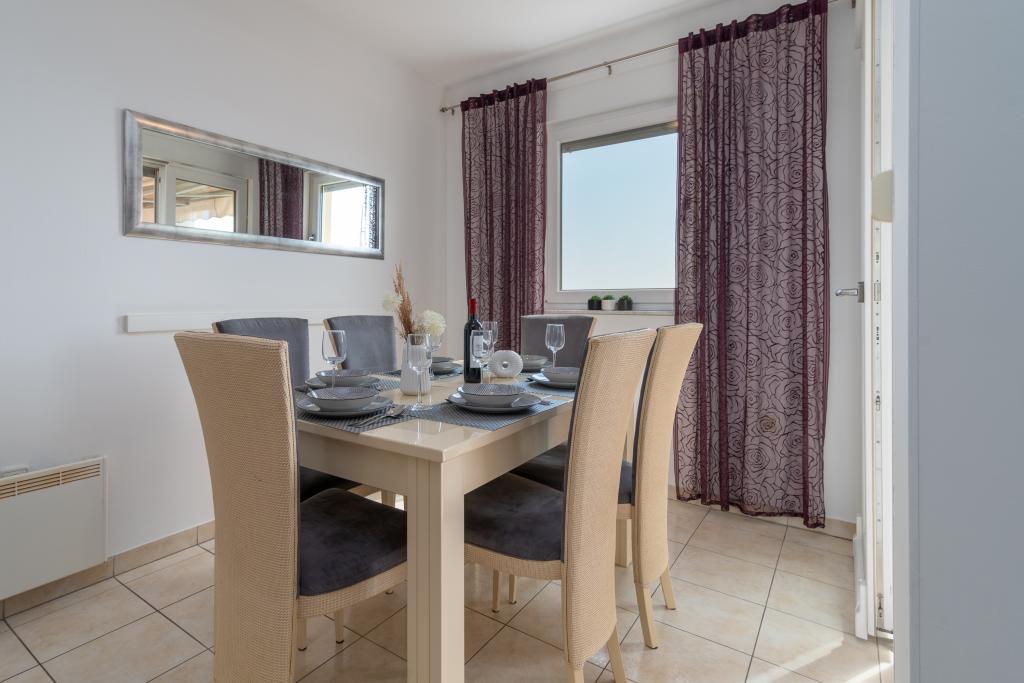 Nově zrekonstruovaný apartmán Anđela pro 5 osob se nachází v zálivu Saldun na ostrově Čiovo, který je spojen dvěma mosty. Byt se skládá ze 2 ložnic, dvou koupelen, kuchyně, obývacího pokoje a balkonu s krásným výhledem na moře. Nachází se 900 m nebo 10 minut chůze od centra starého města Trogir, které je chráněno UNESCO, 7 km od letiště ve Splitu a 1,5 km od autobusového nádraží Trogir.