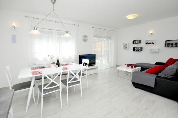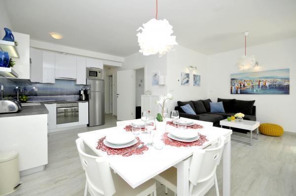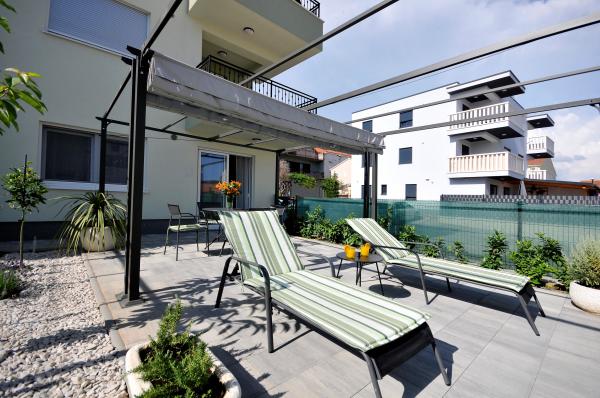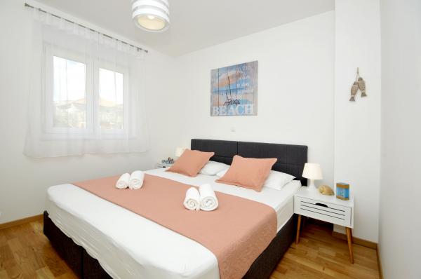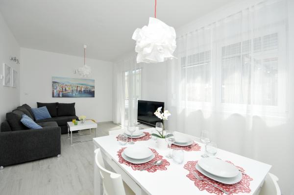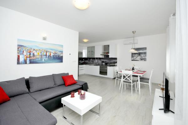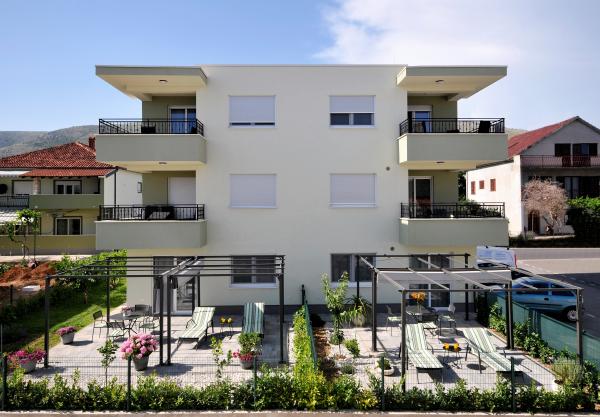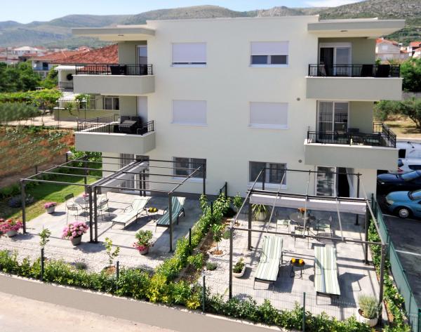 Apartmány Town Trogir se nacházejí na pevnině Trogiru na výborném místě, pouhých 400 m od centra starého města a 900 m od nové městské pláže. Na pláž se dostanete po promenádě podél moře. Všechny hlavní služby jsou v docházkové vzdálenosti, 5 až 10 minut chůze. Apartmány Town Trogir jsou nové a nacházejí se v malém bytovém domě se 6 apartmány. Apartmány mají rozlohu 50 až 60 m2. Apartmány se nacházejí v přízemí. Apartmány jsou moderně zařízené a plně vybavené. Apartmány mají 2 ložnice, obývací pokoj s jídelnou, plně vybavenou kuchyň, koupelnu a velkou terasu se zahradním nábytkem v přízemí. Před budovou je k dispozici bezplatné parkování. Ložní prádlo a ručníky jsou v ceně. Wi-Fi je zdarma. Pobytová taxa je zahrnuta v ceně.