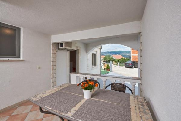 Velmi čistý a plně vybavený byt... Od žehličky po fén. žehlicí prkna pro 2 TV. klimatizace, sady nádobí. Lednička. mikrovlnná trouba, myčka. 2 různé kávovary. Studená voda na uvítanou v lednici, ovoce na stole. Rakija s hostitelem. Perfektní dovolená. Majitelé byli velmi milí a ochotní. Dovolená zde byla perfektní. V blízkosti moře, do obchodu, do starého města v Trogiru přesně 3 km. Skvělá lokalita. doporučuji