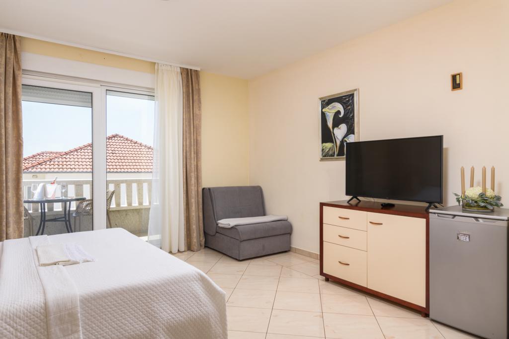Pobytová taxa je v ceně.Apartmán A2 typ 2 (51 m2) - velký obývací pokoj s kuchyňským koutem a jedním lůžkem pro dvě osoby, jedna ložnice s manželskou postelí, koupelnou a balkonem (12 m2). Apartmán typ / studio apartmán A2 1 (30 m2) - obývací pokoj s kuchyňským koutem, manželskou postelí, rozkládací pohovka razvalčenje jedním lůžkem, koupelna a balkon (6,5m2). Apartmán typ / studio apartmán A2 (26 m2) - obývací pokoj s kuchyňským koutem, manželskou postelí, koupelna a balkon (6,5m2). Všichni naši hosté mohou využít gril s dřevěným pecí se nachází v zahradě a nyní oběd a večeře do pozdějších hodin v naprostém soukromí. Pro všechny hosty je k dispozici soukromá prakig před domem.