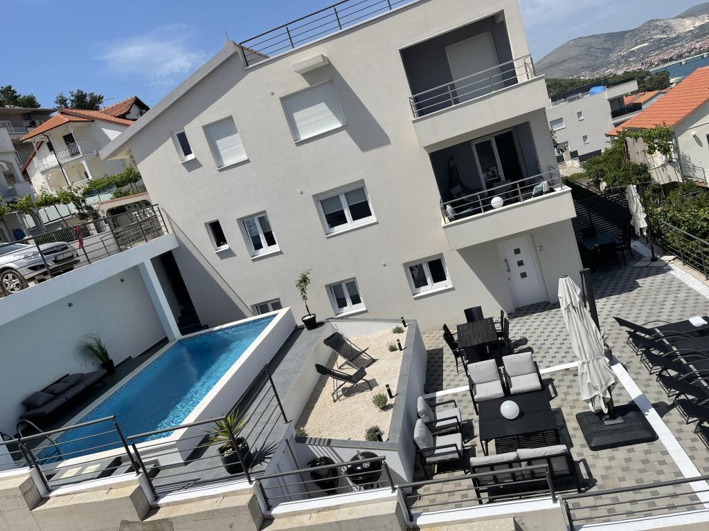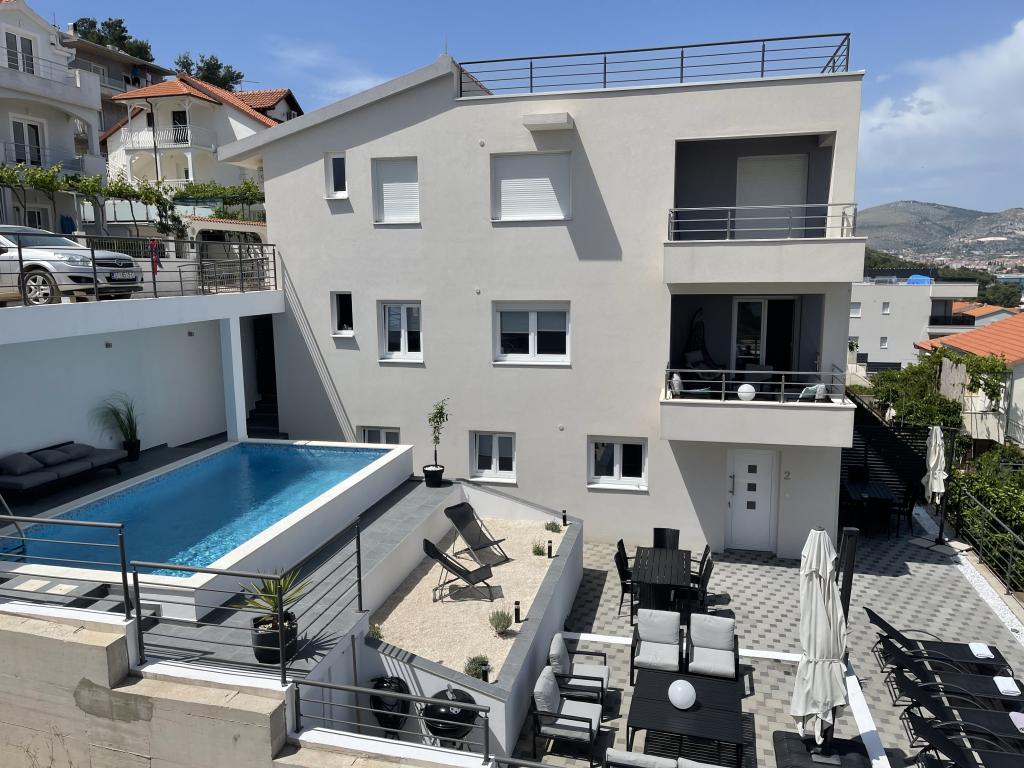 Vysoce kvalitní zařízený moderní byt, abyste se cítili dobře. Nic nechybí! Venkovní areál s bazénem, lehátky a salonky vás zve k lenošení. V docházkové vzdálenosti je několik pláží. Do krásného města Trogir se také dostanete rychle. Byl to úžasný relaxační čas! Rádi se vrátíme.