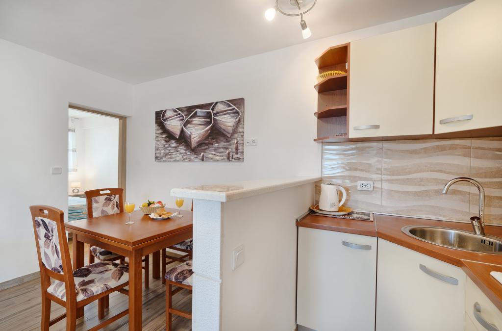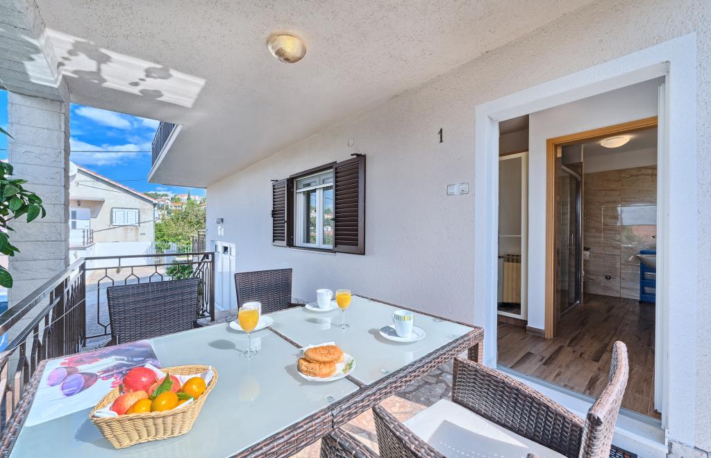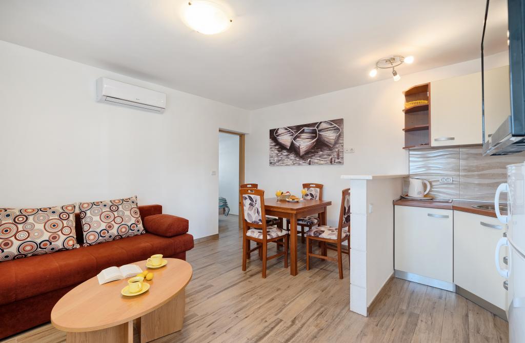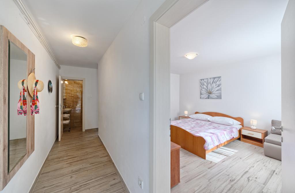 Apartmány Bareta se nacházejí na ostrově Čiovo, obec Trogir. Jsou umístěny ve skvělé lokalitě pro ty, kteří si chtějí užít slunce a moře, stejně jako pro ty, kteří se chtějí seznámit s historickými a přírodními krásami Střední Dalmácie. Historické centrum Trogiru, které je zapsáno na seznamu UNESCO, je vzdálené jen 1000 metrů, zatímco Split (Diokleciánův palác, trajekty na ostrovy), Omiš, Cetina (rafting, canyoning, horolezectví), vodopády Krka a Šibenik jsou vzdálené 50 km. Letiště Split je odtud vzdálené pouhých 5 km. Apartmány se nacházejí v přízemí rodinného domu obklopeného zahradou a zelení. Každý apartmán má svůj vlastní vchod a je k dispozici velká terasa s jídelním stolem, parkoviště, gril a venkovní sprcha. Apartmány sestávají z obývacího pokoje propojeného s kuchyní, ložnice (lůžko 2 1, 2 2), případně dvou dospělých se dvěma dětmi, koupelny s WC. Apartmány jsou plně vybaveny vším, co potřebujete pro pohodlný pobyt / nádobí, ložní prádlo atd.) Tr