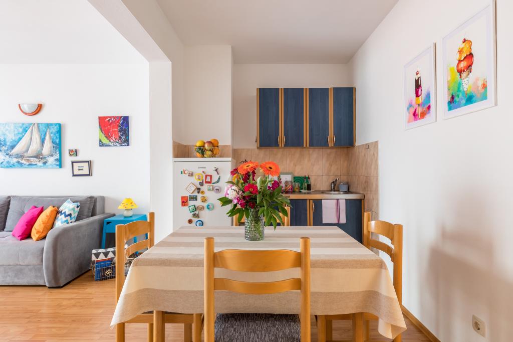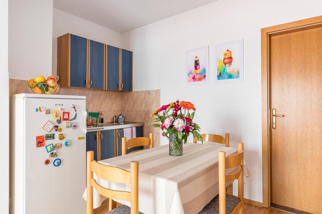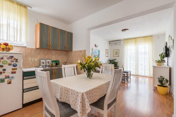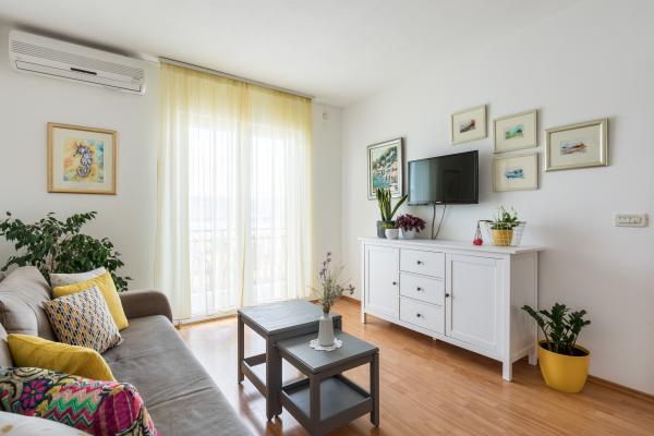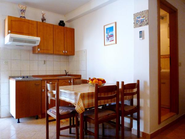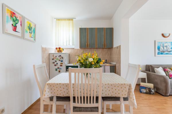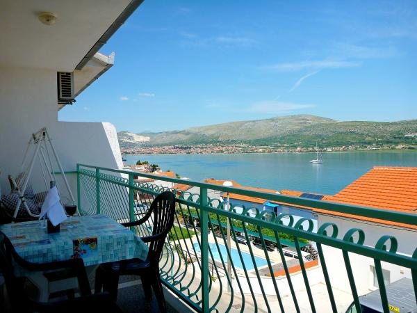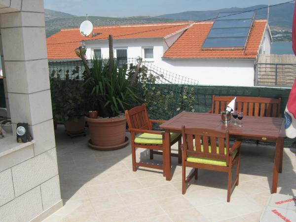 Studio byt je pěkně zařízený, byli jsme uvítáni elegantním a čistým. Nevýhodou je, že přijde s malým dítětem, jakmile opustíte byt, je silnice a terasa je nahoře. Terasu jsme dokonce nevyužili, protože nemáte své soukromí. Místo je velmi pěkné, centrum Trogiru je blízko, můžete se projít (asi 2 km od bytu). Prvních několik dní nás hluk z letadla trápil, až jsme si na to zvykli, protože letiště Split je poblíž. Pláž je opravdu blízko, můžete si vybrat z betonu po oblázkové. Pokud jde o ubytování, hostitelé se neukázali dobře, účtovali nám za ubytování dvouletého dítěte. Při vyjednávání as ním vyjednávejte cenu.