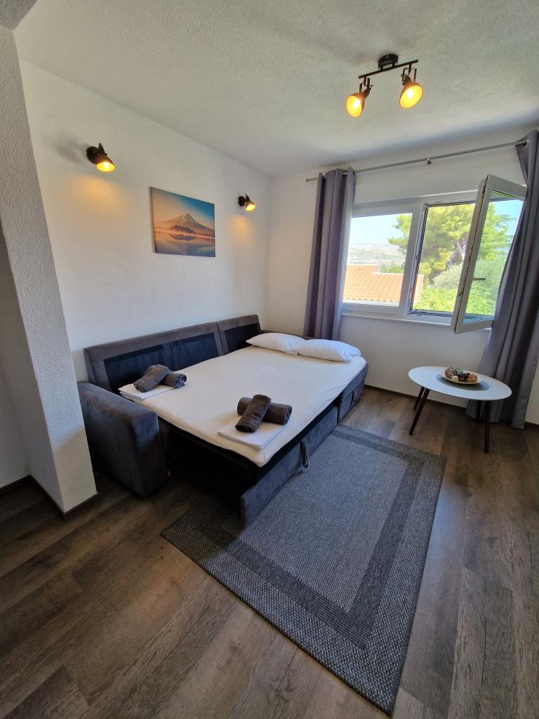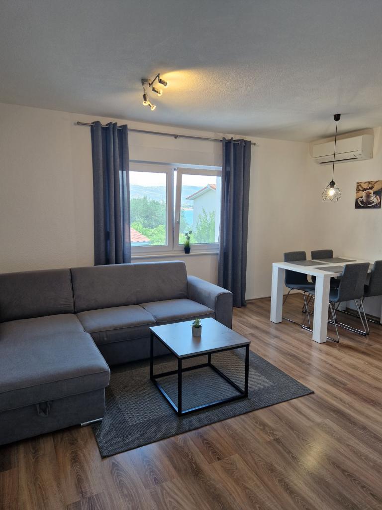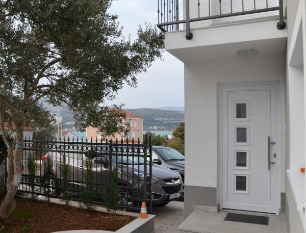 Vřele doporučujeme. Apartmány jsou nové, velmi vkusně zařízené, klimatizace, žaluzie, sítě proti komárům, parkování ... Pláž je 5 minut pěšky. Na Trogir 15-20 minut pěšky. Také vezme malou loď do centra Trogiru. Obchod 2 min. Všechno je krásné a velmi čisté. Hostitelé jsou velmi přátelští a nápomocní. Nachází se na pěkném klidném místě s výhledem na moře. Vřele doporučujeme. Děkuji.