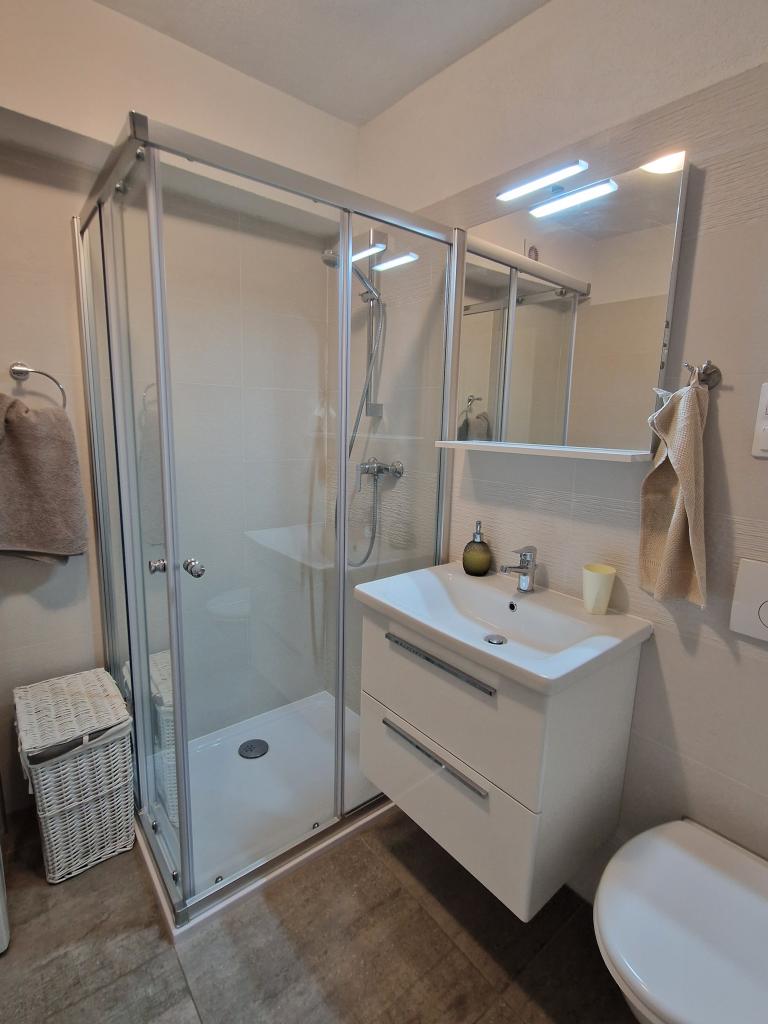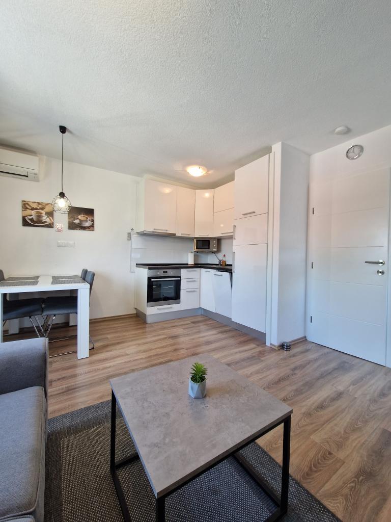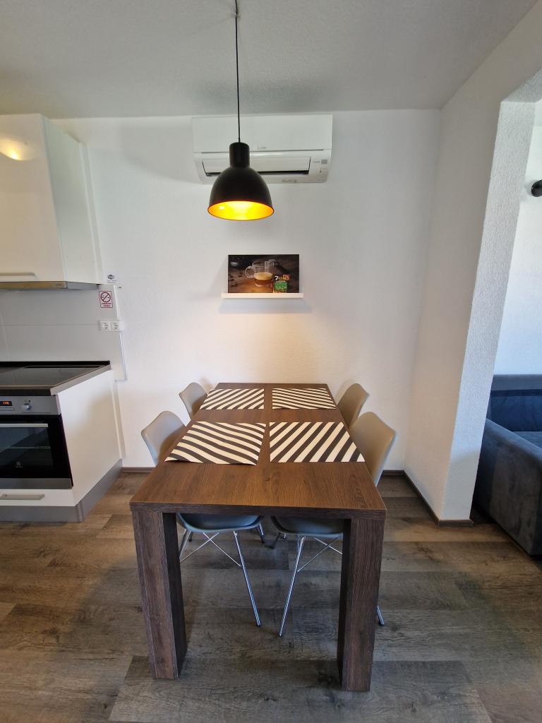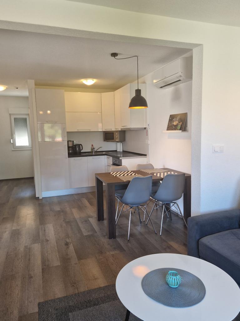 Byt je nový a moderně vybavený, čistý, má myčku a pračku. Náš byt měl velmi pěknou terasu. Nacházejí se na klidném místě v blízkosti písečné pláže. Hostitelé jsou velmi milí a ochotní. Vřele doporučujeme. Byl to první, ale ne poslední pobyt v tomto bytě.