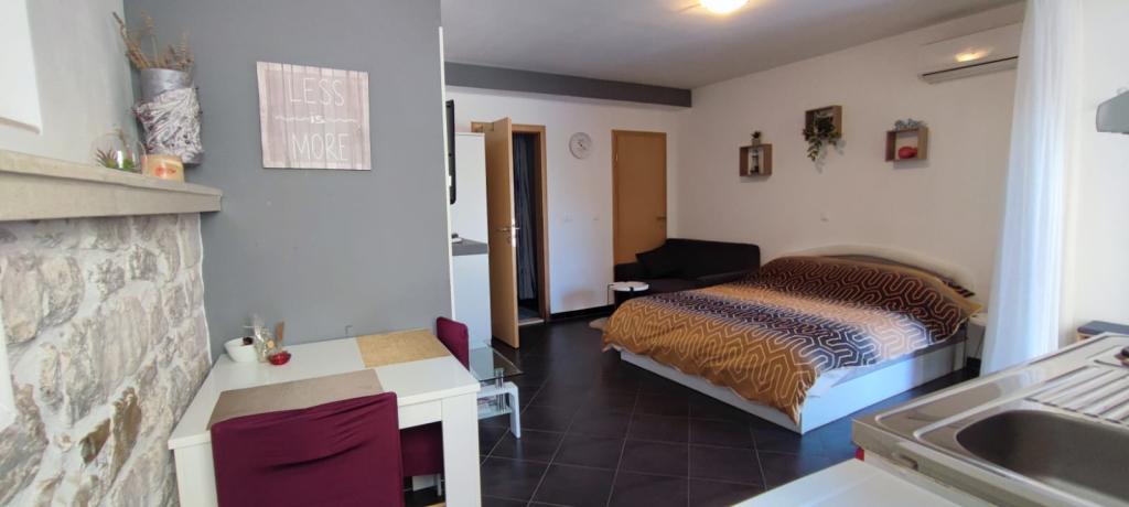 Zcela nové a moderně zařízené 4* apartmány se nacházejí ve staré části Trogiru na ostrově Čiovo. V přízemí je Studio (pro 2 osoby) a v prvním patře je Apartmán (2 + 1). Apartmány byly kompletně zrekonstruovány (2014) s autentickými kamennými zdmi, starými více než 200 let, a jsou plně vybaveny novým nábytkem. Tyto komfortně zařízené apartmány jsou klimatizované a mají bezplatné Wi-Fi. Každý pokoj má vlastní koupelnu s fénem. Zařízení je jen 2 minuty od starého města Trogir. V bezprostřední blízkosti jsou pláže vzdálené 5 minut, malý přístav pro lodě, obchody, restaurace, trh a četné kavárny. Před apartmánem je malý terminál lodí Trogir-Split. Můžete si zde také pronajmout loď, kolo nebo skútr. Apartmány se nacházejí v klidné rodinné čtvrti, obklopené starými kamennými domy, přímo u moře s nezapomenutelným výhledem na staré město! Pro všechny hosty je k dispozici bezplatné parkoviště. vítej :)