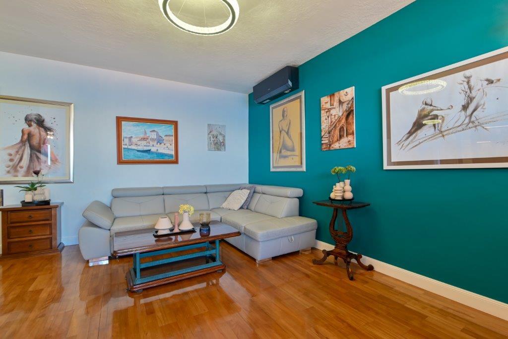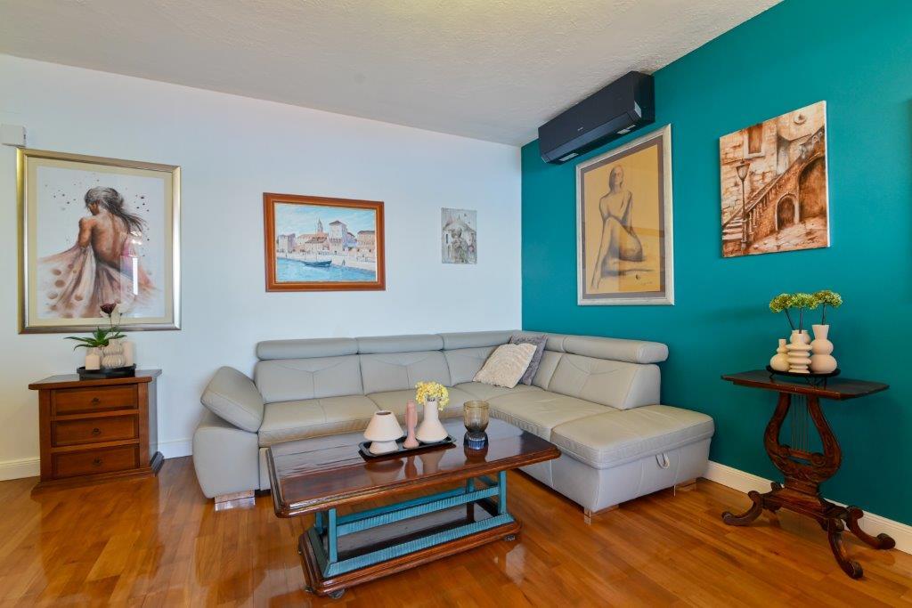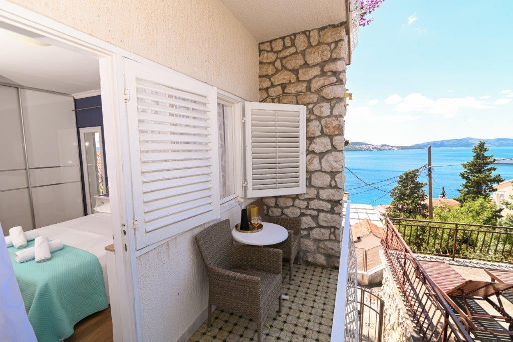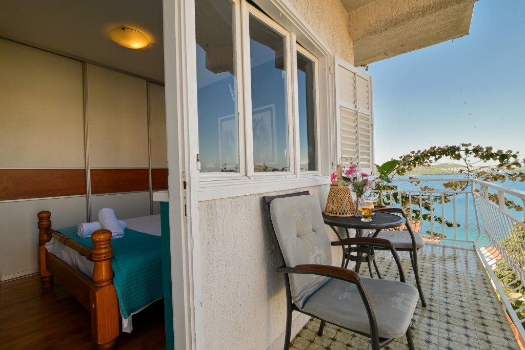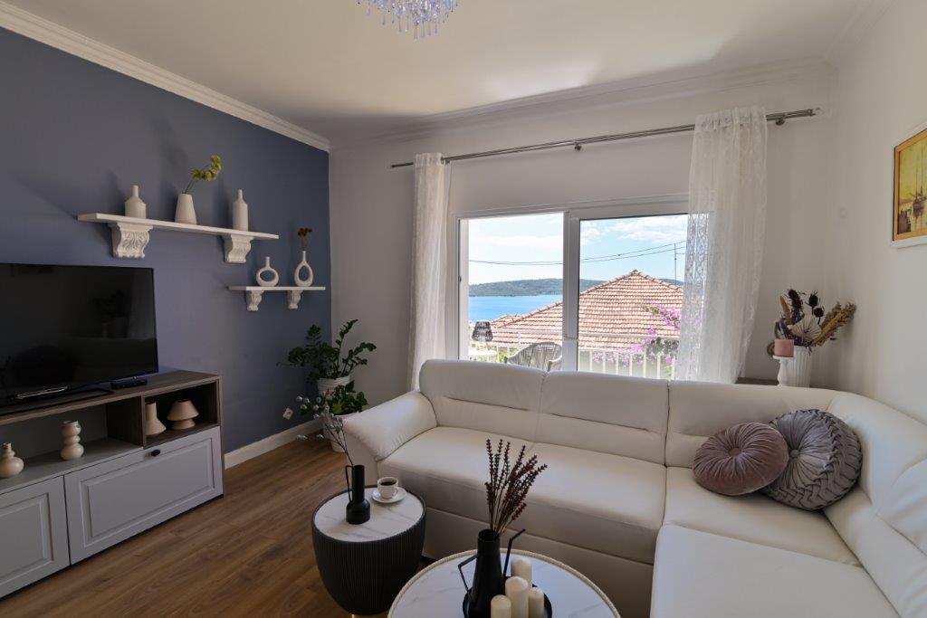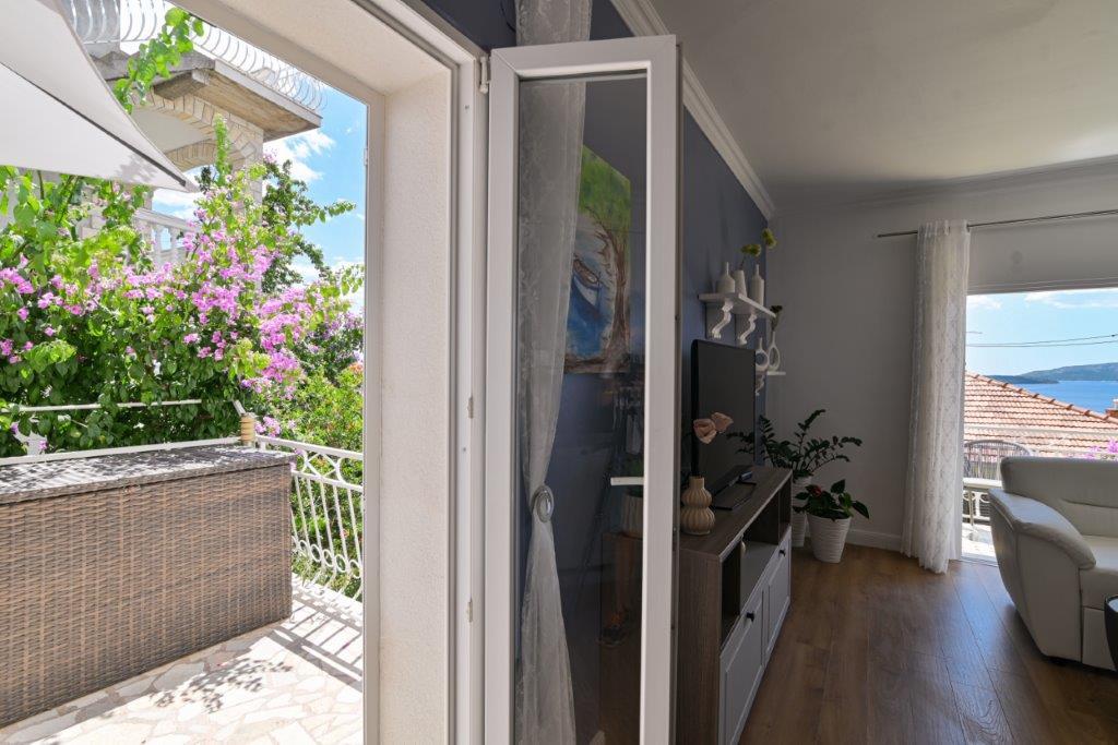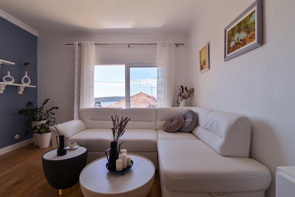 Jedná se o dům s byty tekskluzivna. To se nachází v atraktivní části města. Na jižní straně ostrova Čiovo (spojen mostem na pobřeží a krásné město Trogir (UNESCO)). Dům se nachází ve městě Mirnyi, od moře (pláž s borovicemi), asi 200m od atraktivní městské pláže v Okrug Gornji asi 700m. Vzdálenost od restaurací a obchodů byla dokončena 150m, nemocnice, pošta a všechna zařízení se nachází v centru města, která se nachází asi 15 minut. chůzi a asi 5 km od letiště Split (nabízené transfer z letiště po dohodě s majiteli). Dům má dva byty. Každý z nich je plně vybavené a mají nádherný výhled na moře. Jedním z nich je do kategorií se 4 hvězdičkami. Je umístěn v přízemí má terasu a dva balkony. 2 ložnice, obývací pokoj s rozkládací pohovkou, jídelním koutem a kuchyní a 2 koupelny. Vybaven plně (klimatizace, Wi-Fi, TV se satelitním příjmem, pračka, veškeré kuchyňské spotřebiče, soukromé parkoviště ... a. Druhý je kategorií s 3 hvězdy. Je prvním