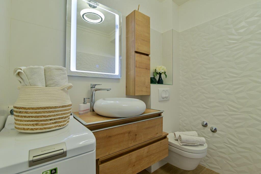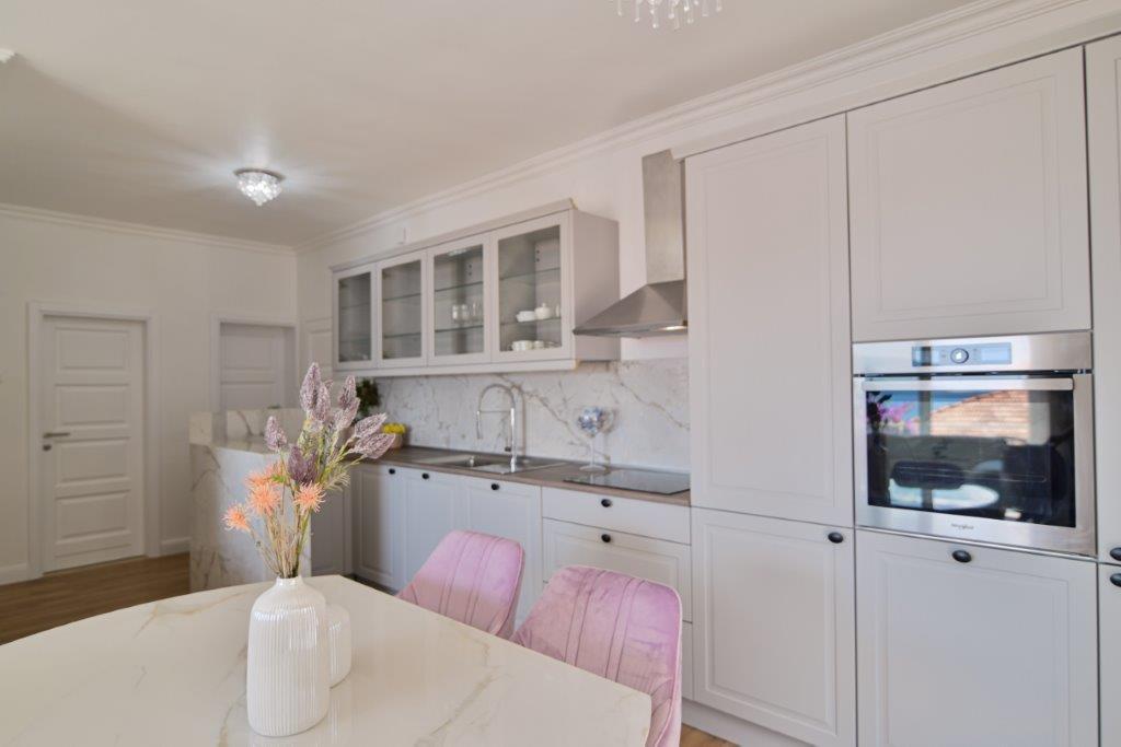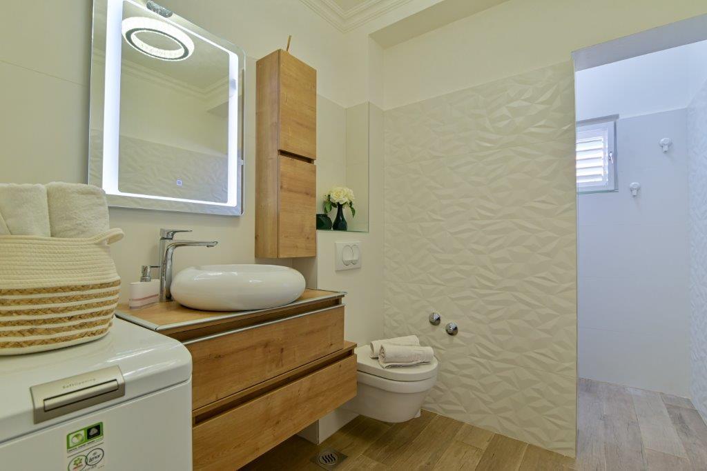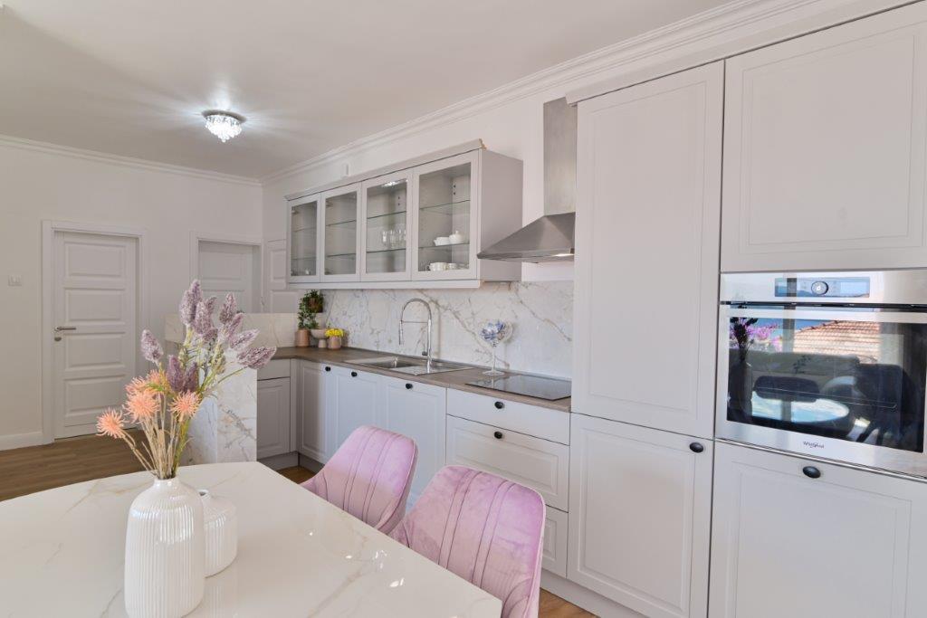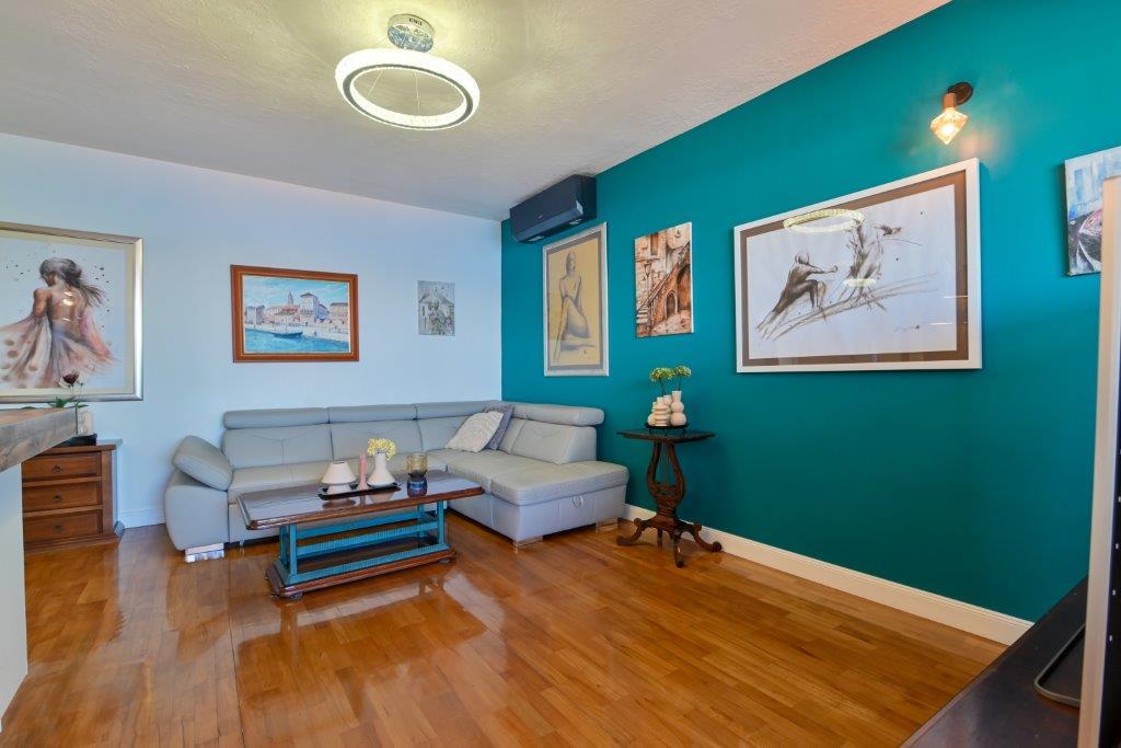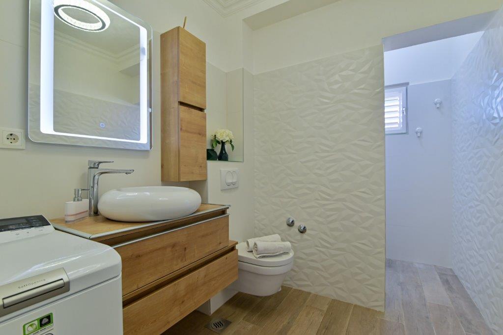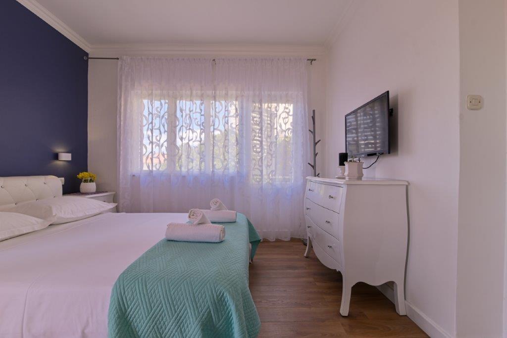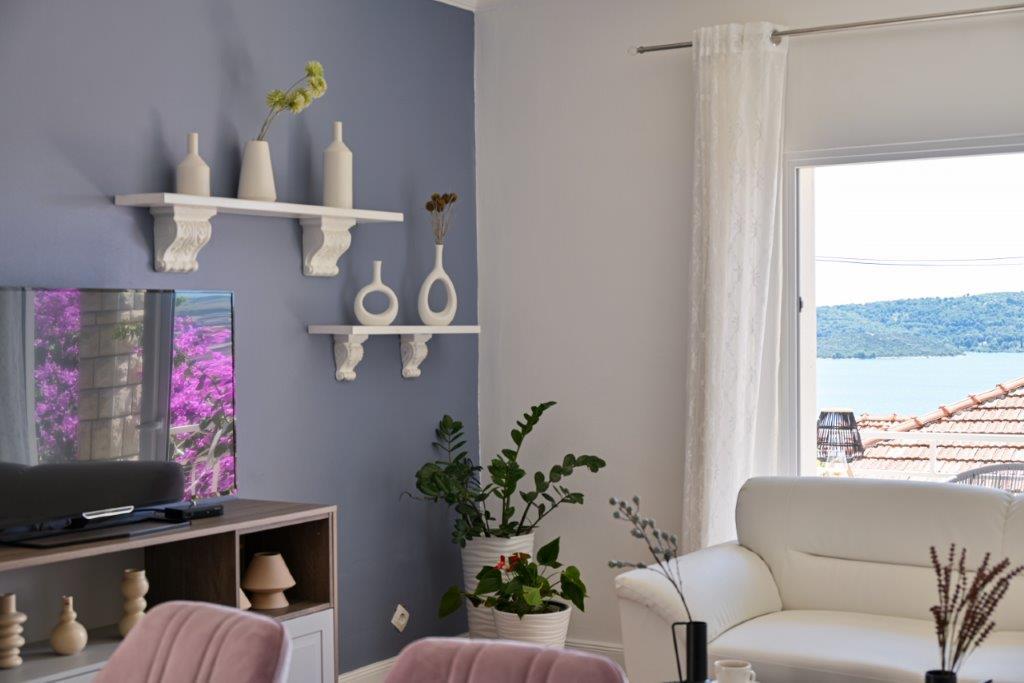 Jedná se o dům s byty tekskluzivna. To se nachází v atraktivní části města. Na jižní straně ostrova Čiovo (spojen mostem na pobřeží a krásné město Trogir (UNESCO)). Dům se nachází ve městě Mirnyi, od moře (pláž s borovicemi), asi 200m od atraktivní městské pláže v Okrug Gornji asi 700m. Vzdálenost od restaurací a obchodů byla dokončena 150m, nemocnice, pošta a všechna zařízení se nachází v centru města, která se nachází asi 15 minut. chůzi a asi 5 km od letiště Split (nabízené transfer z letiště po dohodě s majiteli). Dům má dva byty. Každý z nich je plně vybavené a mají nádherný výhled na moře. Jedním z nich je do kategorií se 4 hvězdičkami. Je umístěn v přízemí má terasu a dva balkony. 2 ložnice, obývací pokoj s rozkládací pohovkou, jídelním koutem a kuchyní a 2 koupelny. Vybaven plně (klimatizace, Wi-Fi, TV se satelitním příjmem, pračka, veškeré kuchyňské spotřebiče, soukromé parkoviště ... a. Druhý je kategorií s 3 hvězdy. Je prvním