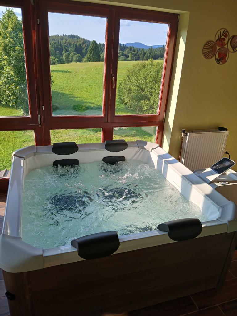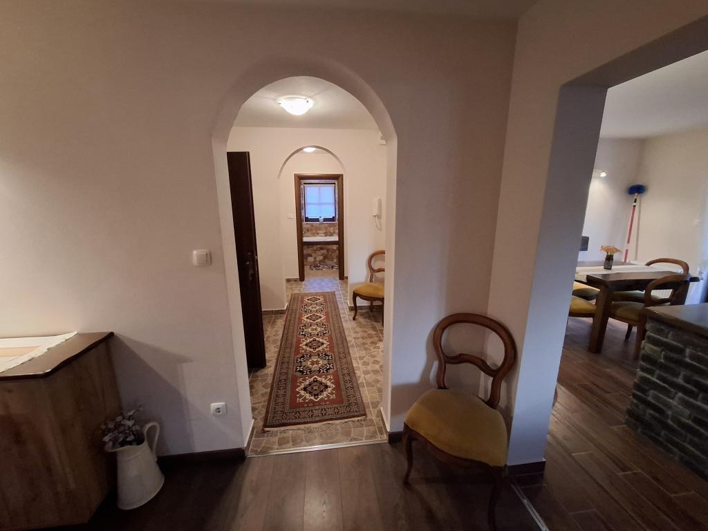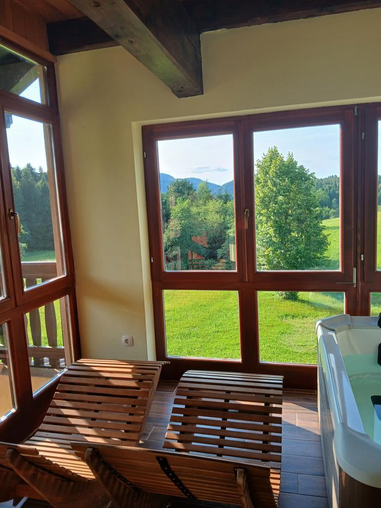Hledáte klid a pohodu obklopeni zelenými loukami, kopci a lesy? Staňte se našimi hosty. Zelené srdce Chorvatska, Gorski kotar, město Tršće je jedním z takových míst. Na adrese Lazi 7, v prvním patře nového domu, se nachází nový apartmán KATARINA. Zahrnuje 150 m2 obytné plochy. Je zařízen v kombinaci rustikálního a moderního stylu. Součástí apartmánu jsou dvě dvoulůžkové ložnice, koupelna s vířivkou, velká kuchyň s jídelnou. Kuchyň je vybavena myčkou nádobí, velkou lednicí s mrazákem, troubou a sporákem s indukční varnou deskou. Součástí kuchyně jsou i malé domácí spotřebiče. Duší našeho apartmánu je velký obývací pokoj s krbem a zimní zahrada, která vám vyrazí dech. Výhled na louky, les s šálkem ranní kávy dokáže proměnit vaše ráno v nezapomenutelný okamžik. Můžete si také zahrát různé deskové hry, elektrické šipky. Nedílnou součástí tohoto apartmánu jsou dvě terasy. Na terase, ze které vedou schody do prostorného zeleného dvora, je plynový gril a stůl pro 6 osob.