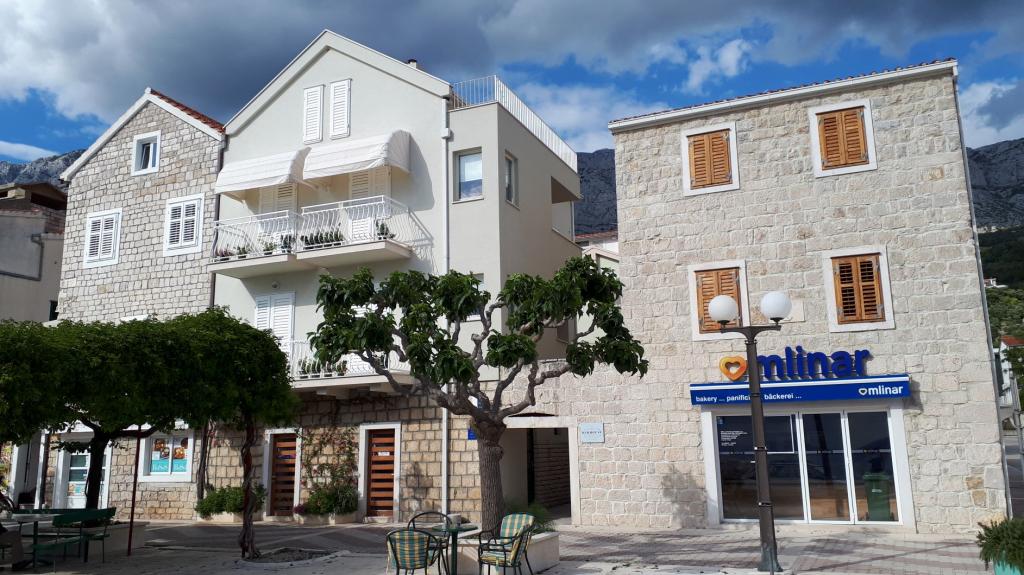 Zařízení, Apartmány Čobrnić, Kraj 75, Tučepi se nachází v centru obce, ve starém městě, chráněné oblasti Tučepi. Rodina Čobrnićů se věnuje cestovnímu ruchu od 50. let 20. století s tradicí více než 70 let. Budova je stará rodinná budova zrekonstruovaná v roce 2015. Skládá se ze tří bytů, každý přibližně 55 m2, v každém patře je jeden byt. Všechny apartmány mají terasy-balkony s výhledem na moře. Vybavení bytu je kombinací starého a nového, jednoduchého a dostatečného, romantického a zvláštního! Objekt se nachází v samém centru obce, u moře, přístavu, restaurací ... v jedné z mála zbývajících starých ambiencí v Tučepi.