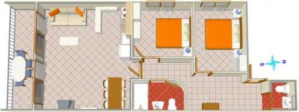 Apartmán pro čtyři osoby se dvěma přistýlkami (68 m2)