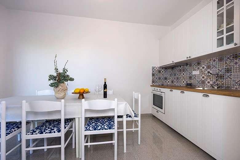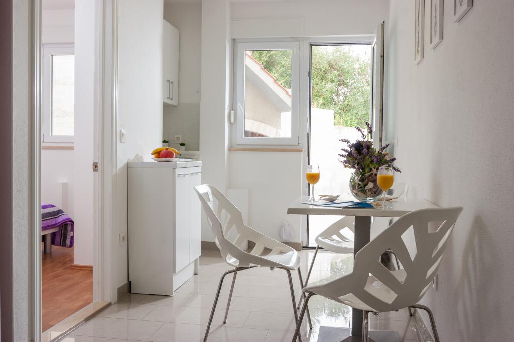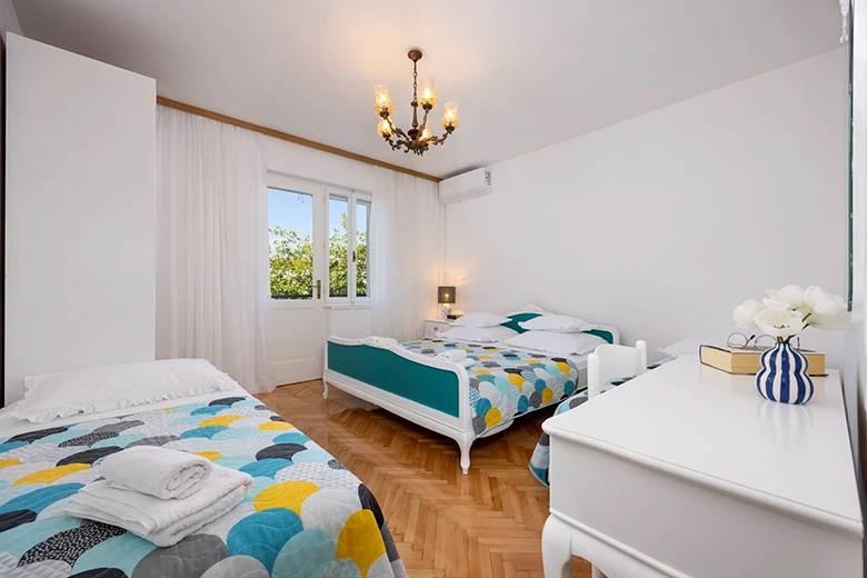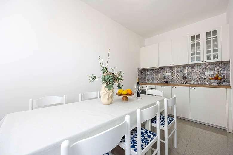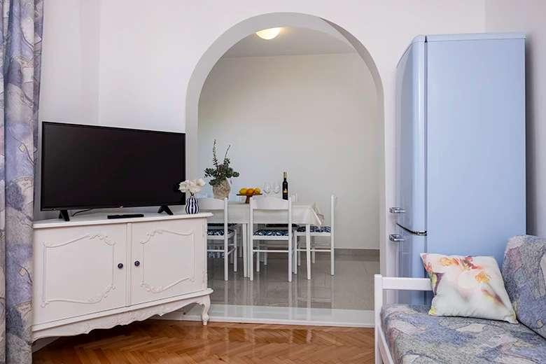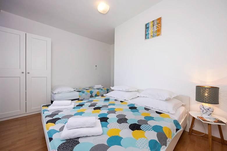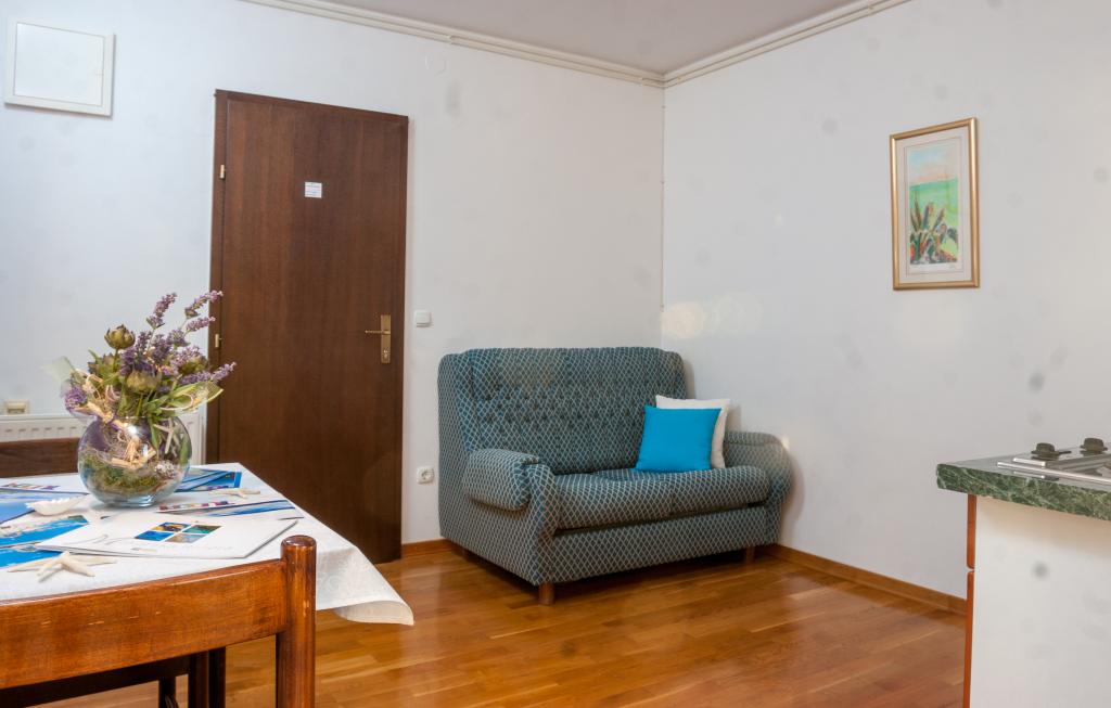 Apartmány IRENA jsou plně a moderně vybavené apartmány. Nacházejí se jen dvacet metrů od moře. Pláž je tvořena malými oblázky a je zdobena borovicemi, které vytvářejí příjemný stín. Parkování je před domem a je zde možnost využití garáže. Spokojení hosté a velký počet starých hostů jsou zárukou kvality nabízené hostiteli.