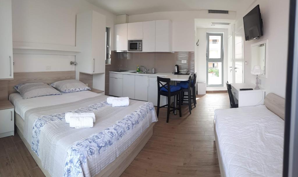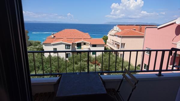 Všechny apartmány nabízejí krásný výhled na moře a možnost stolování na terase.