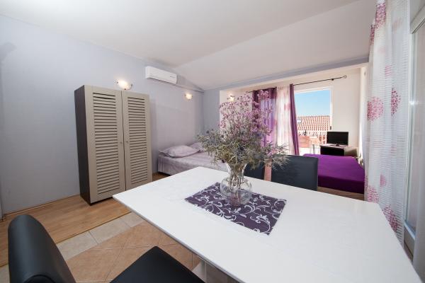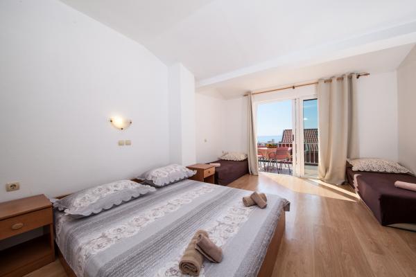 Apartmán 10 minut chůze od krásného moře. Nejvyšší patro s krásným výhledem na moře a kuchyňským koutem vhodným pro malé obědy. Malá a ne moc pohodlná koupelna, ale na pár dní v Tučepi to může být v pořádku.