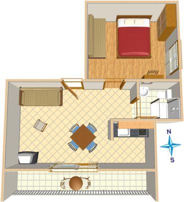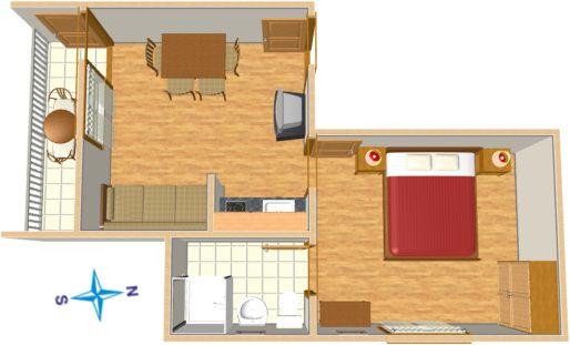 Apartmán pro čtyři osoby s jednou přistýlkou (42 m2)