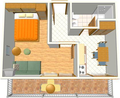Apartmán pro dvě osoby se třemi přistýlkami (35 m2)
