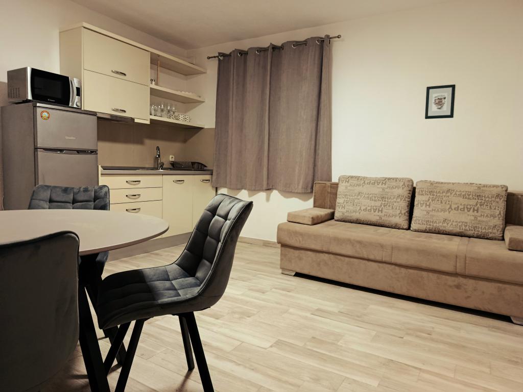 Apartmány Mitan se nacházejí v centrální části Tučepi, podél hlavní silnice. Objekt se nachází 1,5 minuty chůze od pláže, na kterou se dostanete po překročení hlavní silnice pomocí semaforu pro chodce. V každém apartmánu jsou kuchyně vybaveny myčkou nádobí a lednicí s mrazničkou. Tři apartmány mají 2 nebo 3 klimatizace, zatímco 2 apartmány mají 1 klimatizaci. Použití pračky je zdarma. Parkování se nachází ve dvoře před domem, každý byt má vlastní parkovací stání.