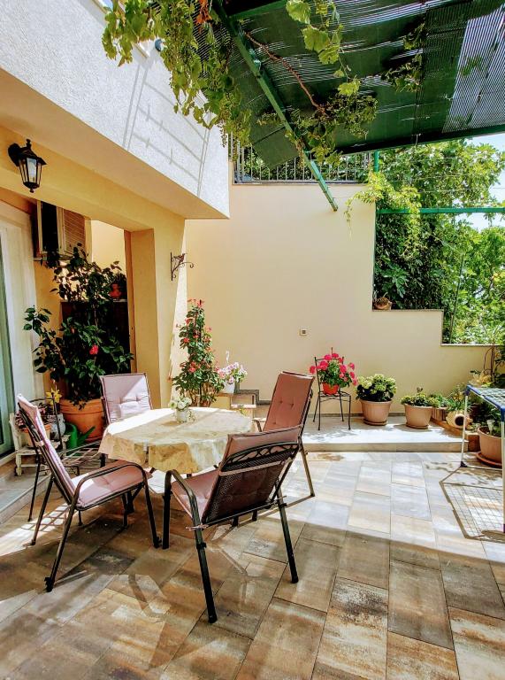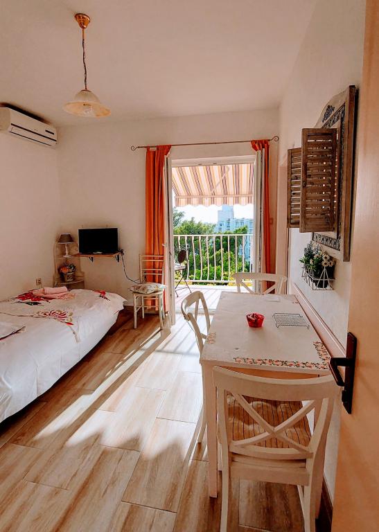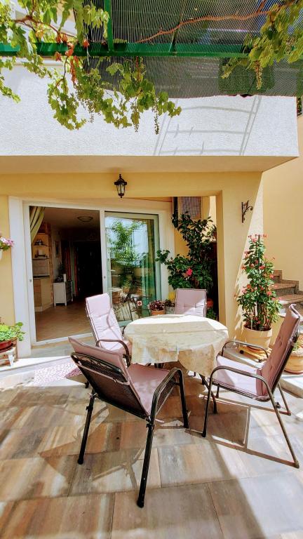 Pobytová taxa je v ceně.Hledali jsme ubytování, které bude pro rodinu s malými dětmi...dostatečně vybavenou kuchyňku (když něco chybělo, paní domácí nám vše donesla), dostatečně velký pokoj pro 4 a krásnou terasu s výhledem na moře. Vše ve stínu pěstovaných rostlin na zahrádce. Večer nasvícené světýlky, což ocenili hlavně děti, v noci klid. Naši malý zvířecí nadšenci si oblíbili i domácí kočičky a nakukování do garáže pana domácího. Neotravovali komáři a paní Nensi nás neustále rozmazlovala a ptala se, jestli je vše ok. Za mě krásná dovolená s dětmi. Promenáda kousek, schody jsou všude až k promenádě a pláži. Obchody kousek. Komunikace před ubytování byla perfektní a na místě také. Kazí to jen silnice před domem, ale bydlení je o hodně výš, ikdyž jsme byli v přízemí. Ani ta nebyla v noci slyšet. Takže díky Nensi