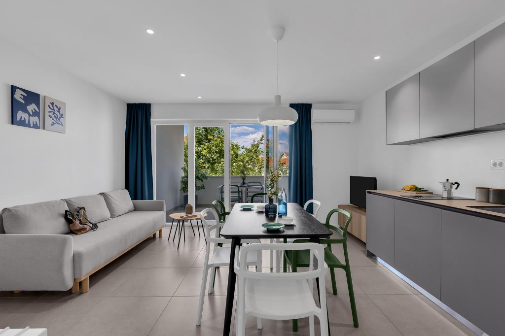 Apartmány č. 18 se nachází v blízkosti moře a oblázkové pláže zdobené borovicemi vytvářejícími příjemný stín. Apartmány jsou nově zrekonstruované, plně vybavené s velkými lodžiemi a vlastním parkovištěm. Jen pár minut chůze do centra města a všech důležitých zařízení.